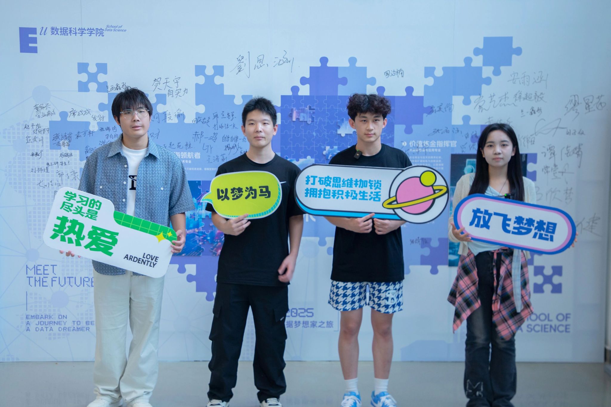 大学如何开启数据梦想之旅?超有仪式感的签名墙、趣味打卡点,带你瞬间融入数据科学学院氛围!各专业教师现场讲解课程体系,面对面为你答疑解惑;还有学长学姐暖心分享实用“大学生存指南”,从学习到生活全程助攻。