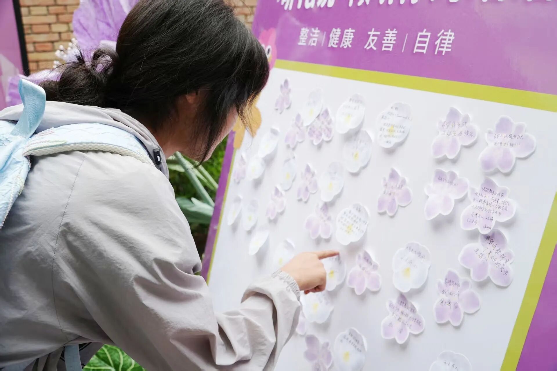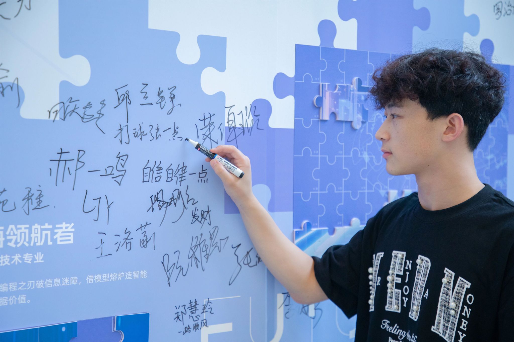 在签名墙前写下对大学生活的期待