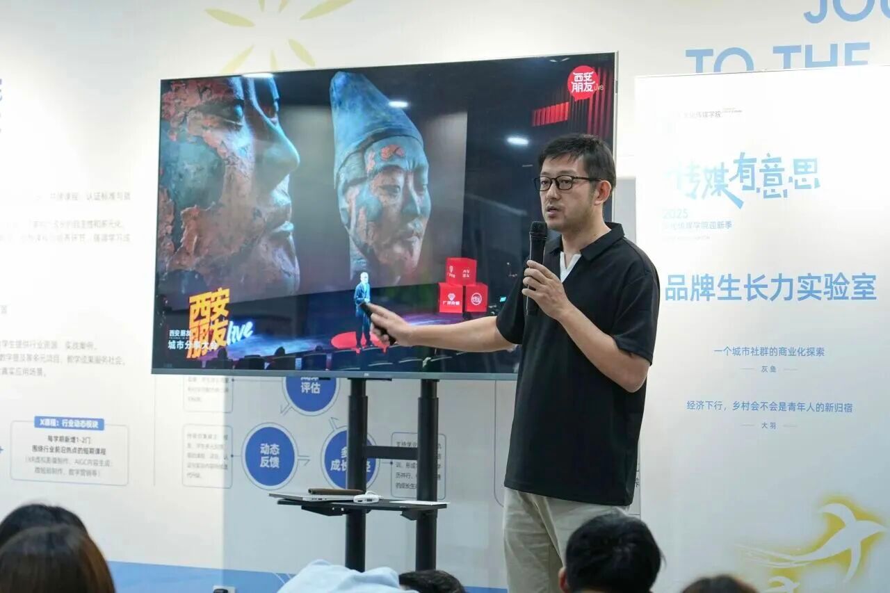 行业实战环节则更加多元,新生不仅在“青年放映厅”通过电影《玛丽和麦克斯》学习叙事与情感表达,还在AIGC实战中生成爆款文案,深入西影厂、老钢厂、非遗体验中心等地,从工业美学、非遗再生到水资源环保,多维度感受传媒与不同领域融合的可能。
