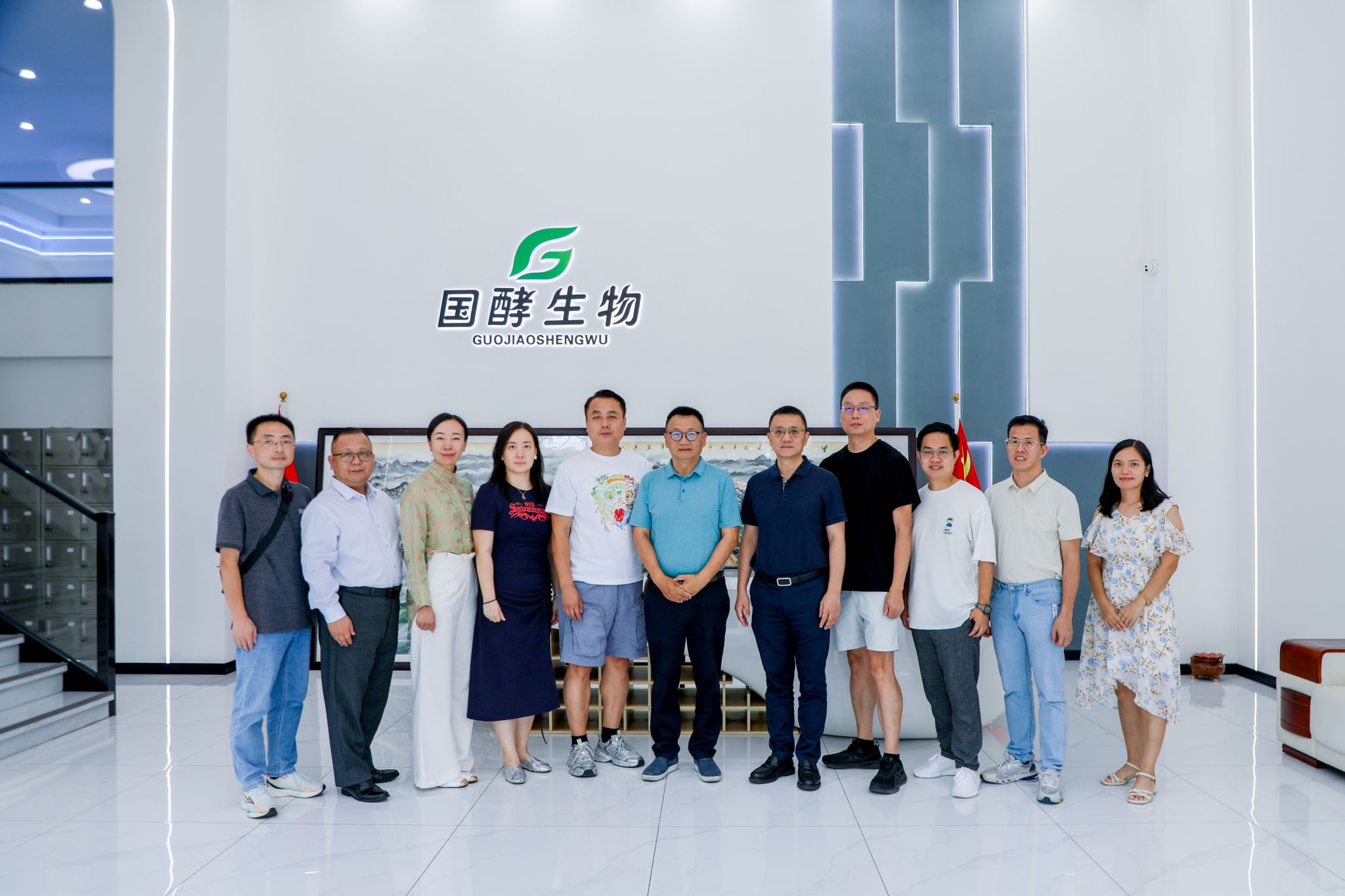 胡建波一行走访梁华(左五)在佛山创立的国酵生物(广东)有限公司