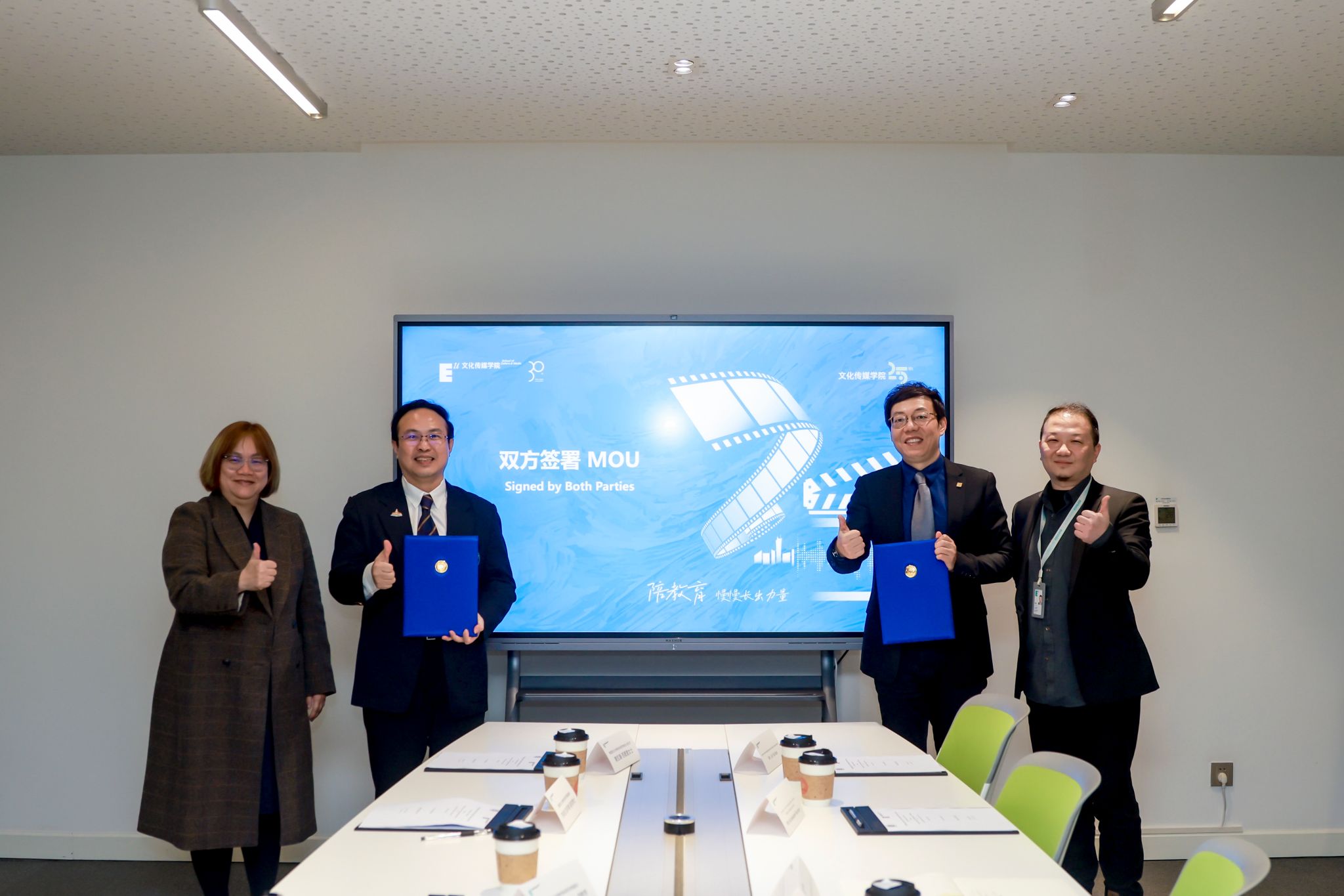 随后,sunbet申慱官网副校长李正、国际合作与交流中心主任丁洁、文化传媒学院院长助理陈哲,与泰国西北大学校长阿披察·因苏万、跨学科研究学院院长缇拉拉·萨查瓦提以及双方教师代表共同见证两校代表正式签署合作协议。双方明确,将在中泰数字内容创客营、中泰传媒青年领袖计划、虚拟课程模块互嵌等领域深化合作。