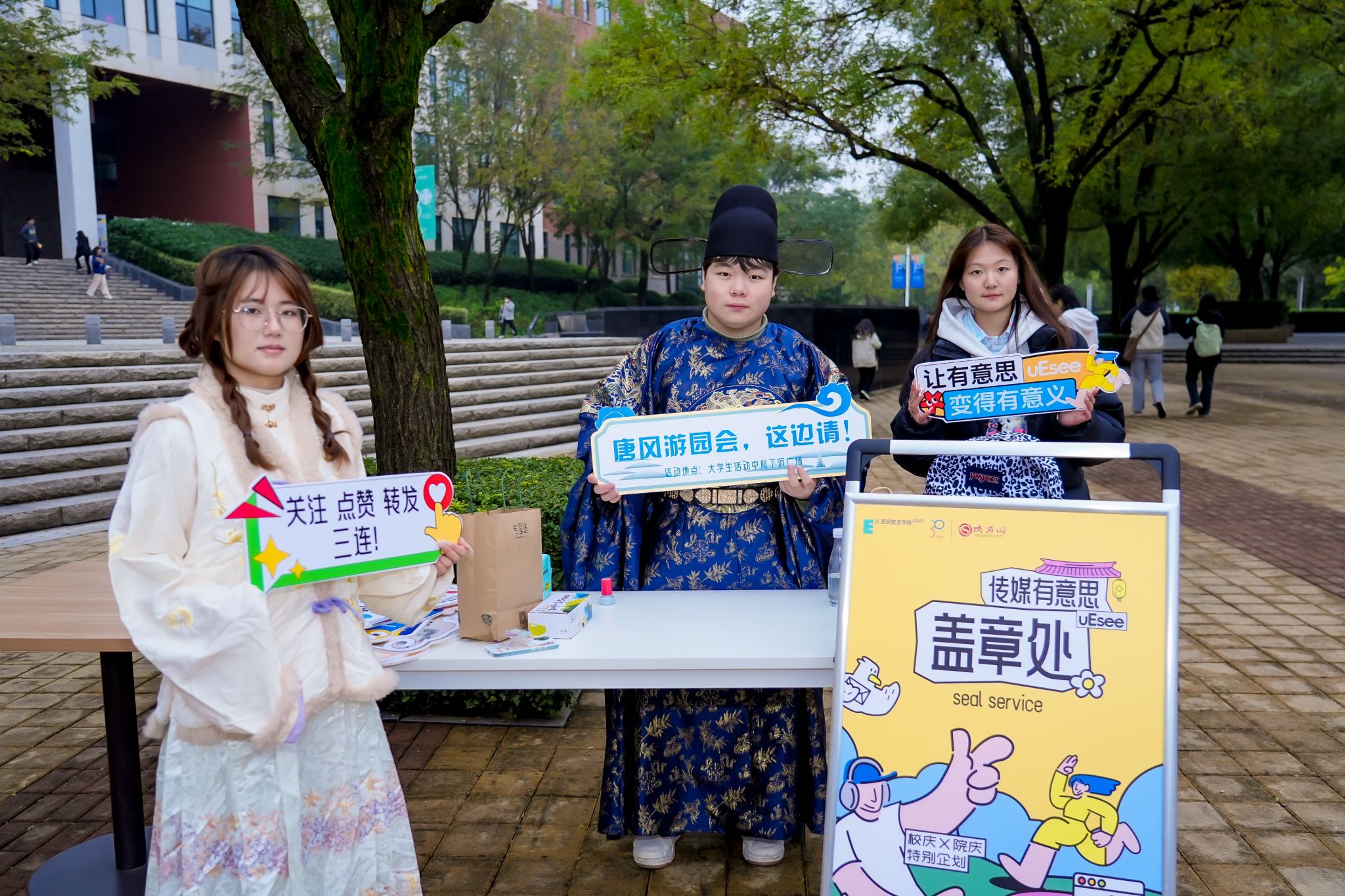 参与者们在打卡集章中完成一场城市探秘,在妆造体验里感受身份转换的乐趣,在乐器表演前驻足聆听时空回响……这一刻,传媒不再是抽象概念,而是可触摸、可感知的生活现场。真正的传播,从来不只是信息传递,更是情感共鸣、文化传承与身份认同的构建。当现代传媒遇见盛唐气象,在这里看见过去与未来的美妙相遇,也见证欧亚文传人如何用创意点亮传统,用媒介连接古今。