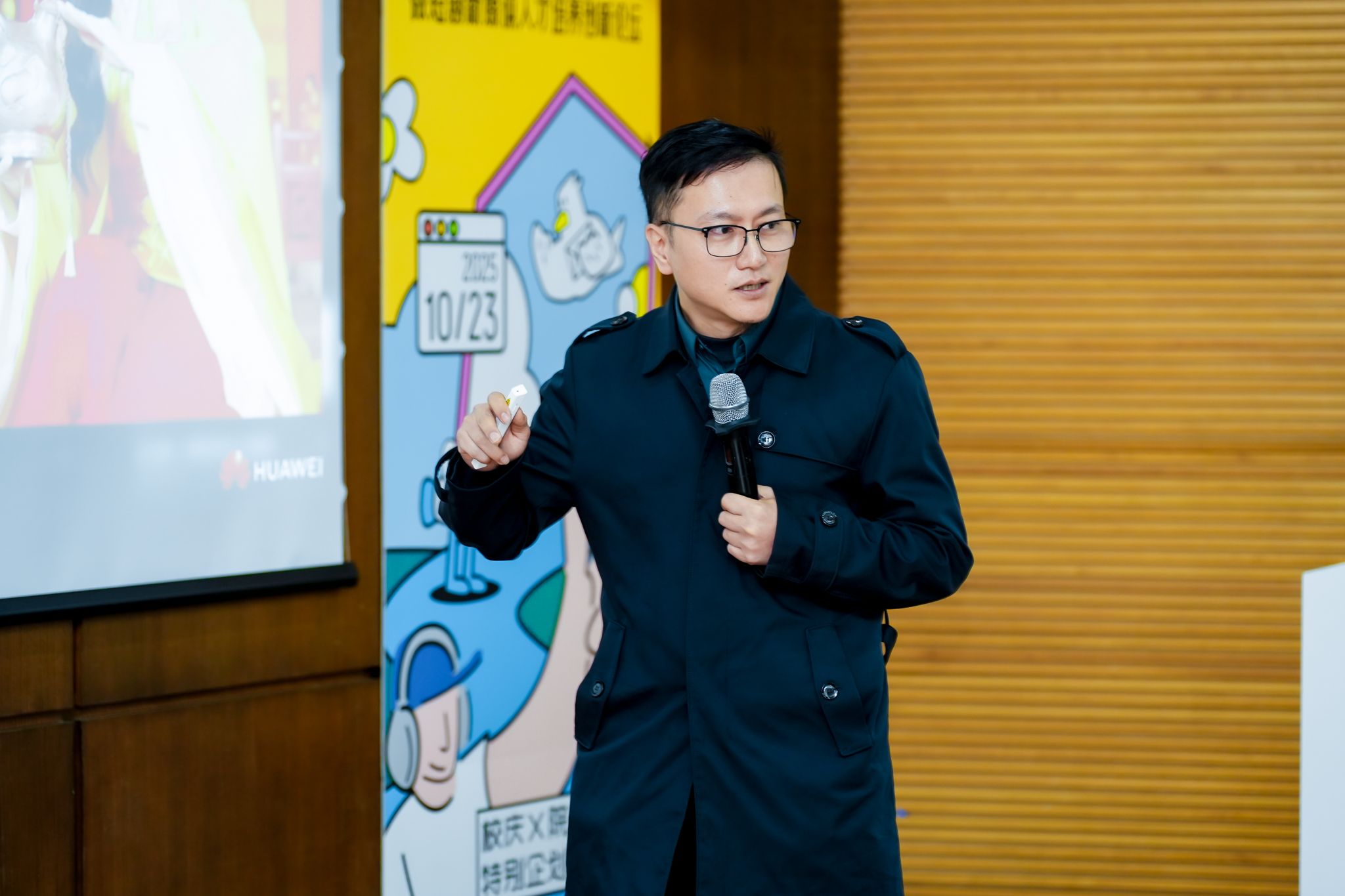 在分享环节,知乎知名AI领域创作者陈珂(皮耶霍)结合自身从业经历,以“AI时代的内容创作:从技术到表达”为题带来主题分享。学生们也提出了“AI创作的版权问题”“非技术专业如何入门AI应用”等问题与嘉宾互动。