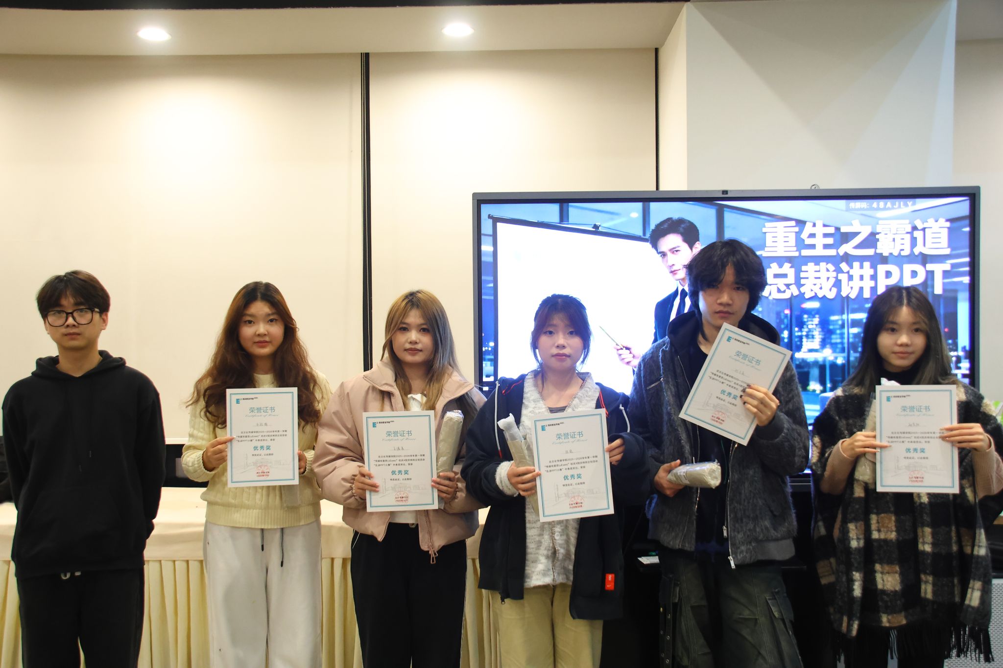 文化传媒学院首任院长刘建勋为6位新进教师颁发证书