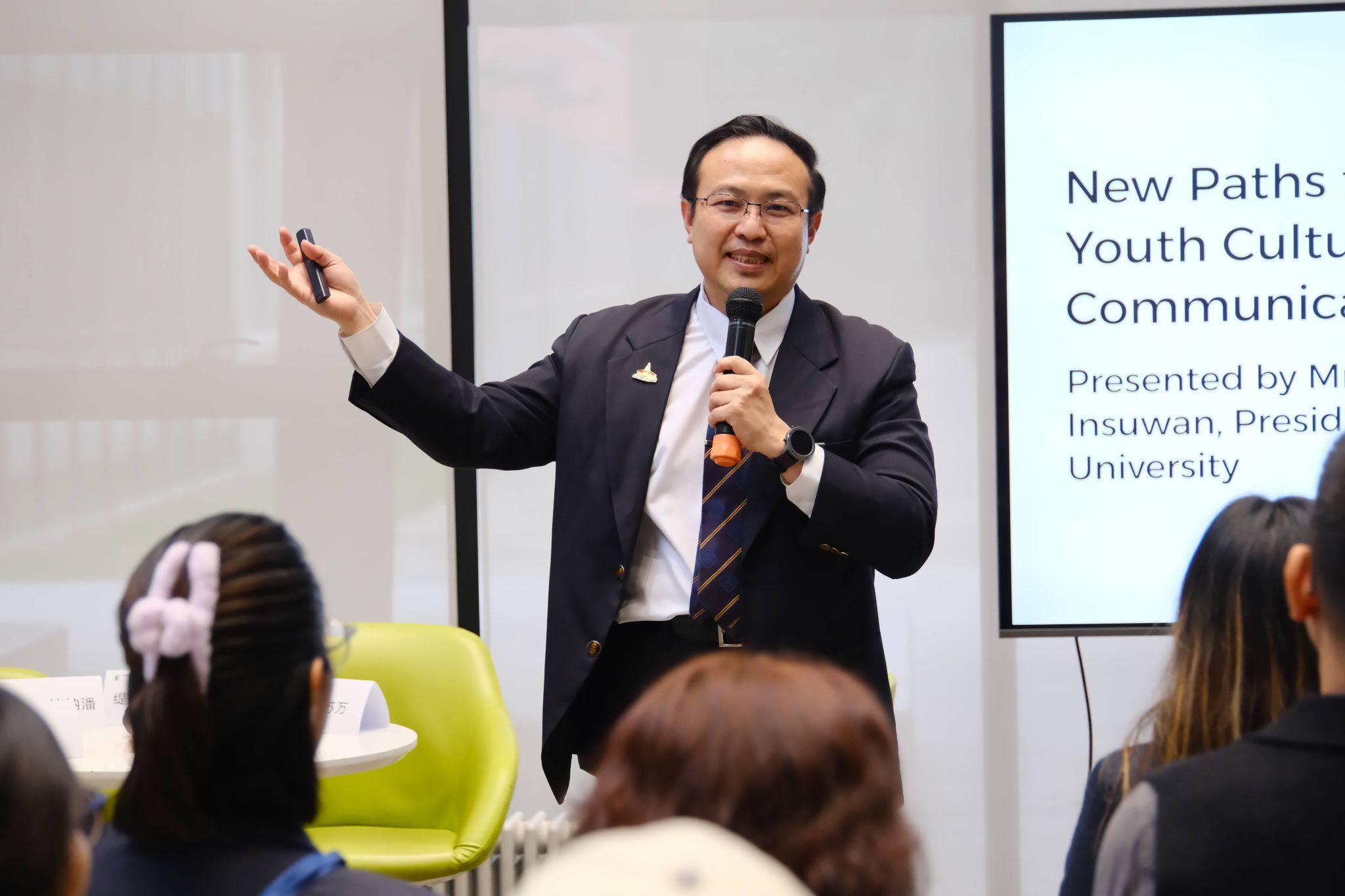 10月23日下午,文化传媒学院师生与泰国西北大学代表团共聚设计与媒体实验中心西翼大厅,举办第三期国际传播胜任力工作坊,展开一场超越语言与文化疆界的深度对话。