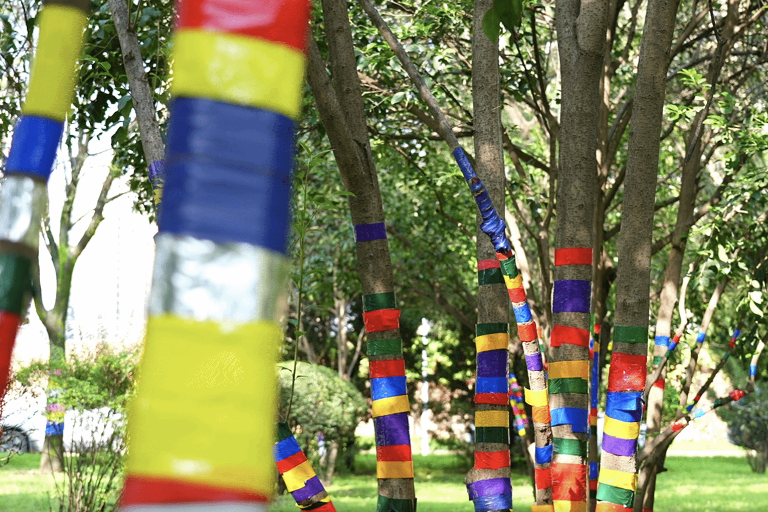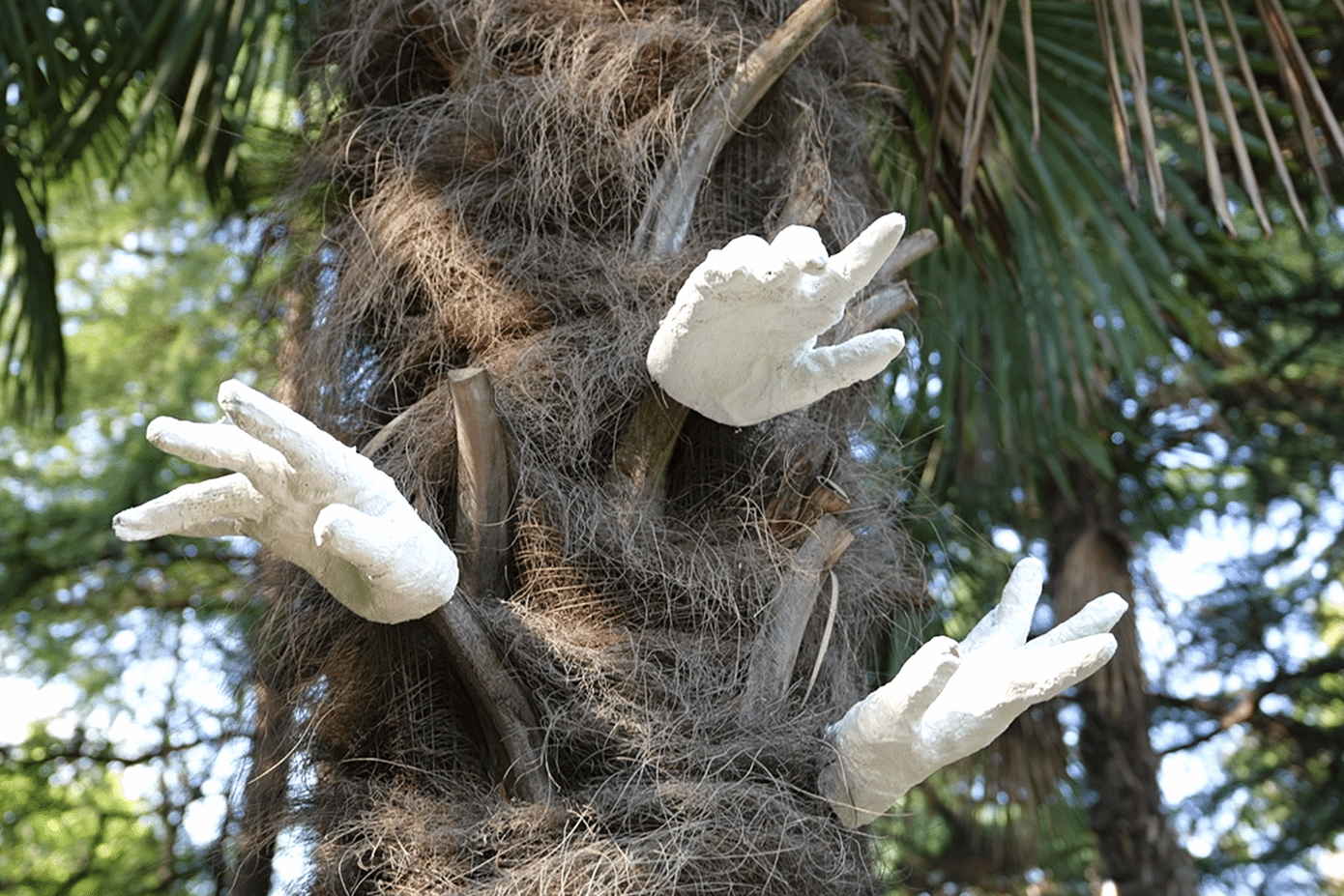 用石膏绷带在树干间塑造出生动的手势形态,以极具亲和力的方式打破人与自然之间的隔阂,让艺术成为连接彼此的温暖媒介。