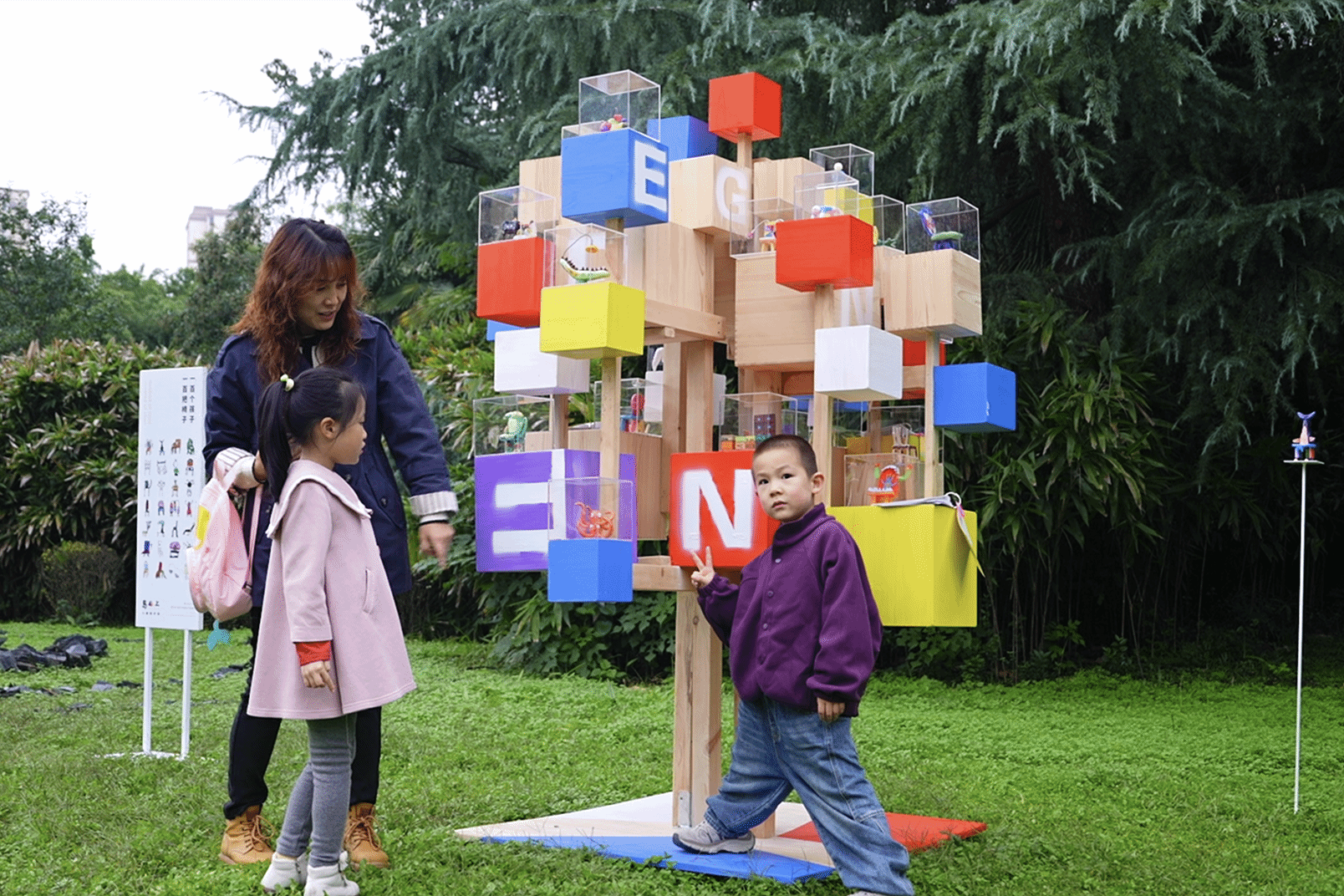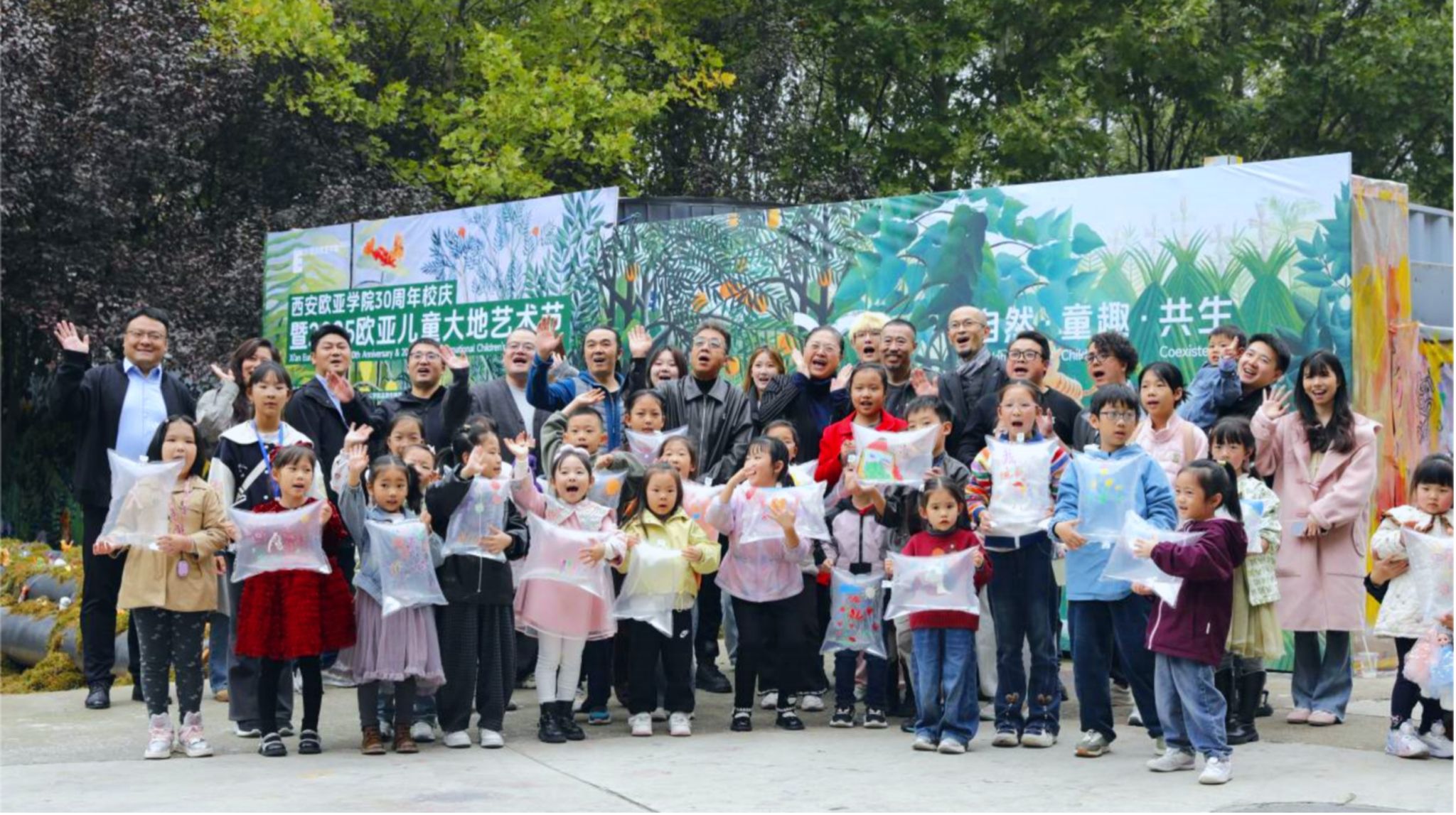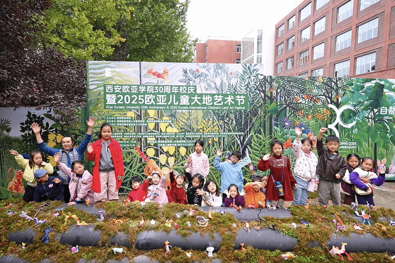 熟悉欧亚校园的人都知道,北E教学楼附近经常会冒出一些新鲜好玩的艺术装置,这里是人文教育学院师生们创作的“天堂”。在欧亚30周年校庆之际,一粒名为“自然·童趣·共生”的灵感种子,又在这片花园沃土中落地生根,灿然绽放。