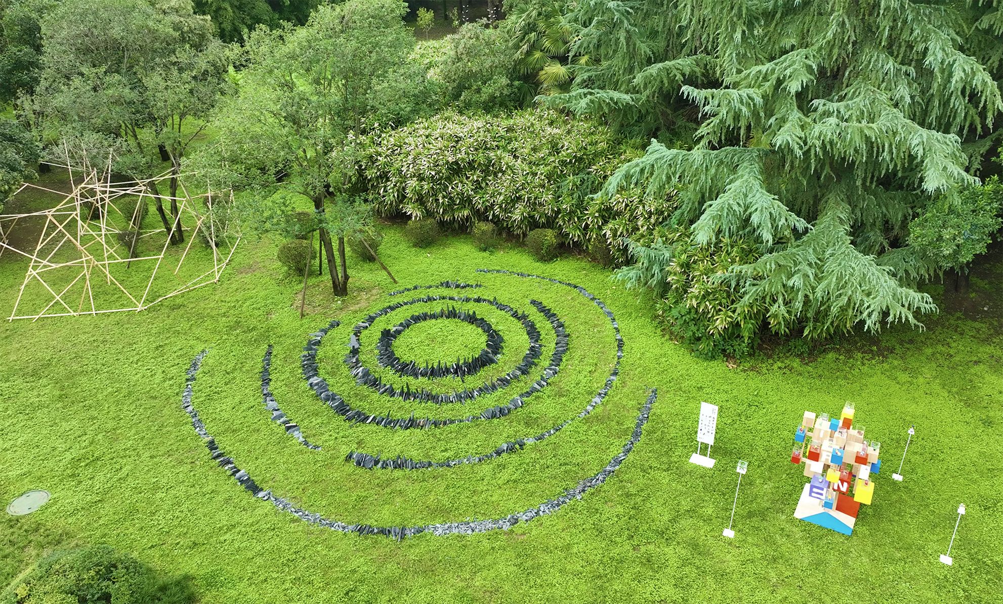 3吨青石板,构建起直径9米的螺旋石阵,以地质材料呼应宇宙运行轨迹,在厚重与流动间诠释人与自然的关系。