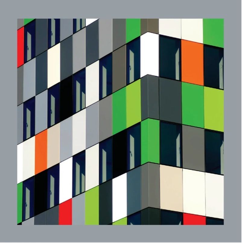 走近春山里,极具雕塑感的建筑形态引人注目,灰白色系墙面构成沉稳背景,跳跃的开窗尺度与色彩点缀其间,面向主校园的东立面,变化丰富的阳台造型令人联想到蒙德里安的构成艺术