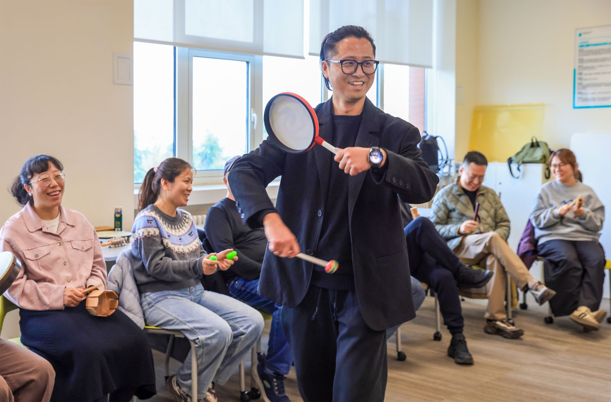 在感统(奥尔夫音乐)实训室,大家通过节奏乐器与肢体律动打开感官,在旋律的流转中舒缓身心、互动交流,体会音乐对内在感知的唤醒与滋养。