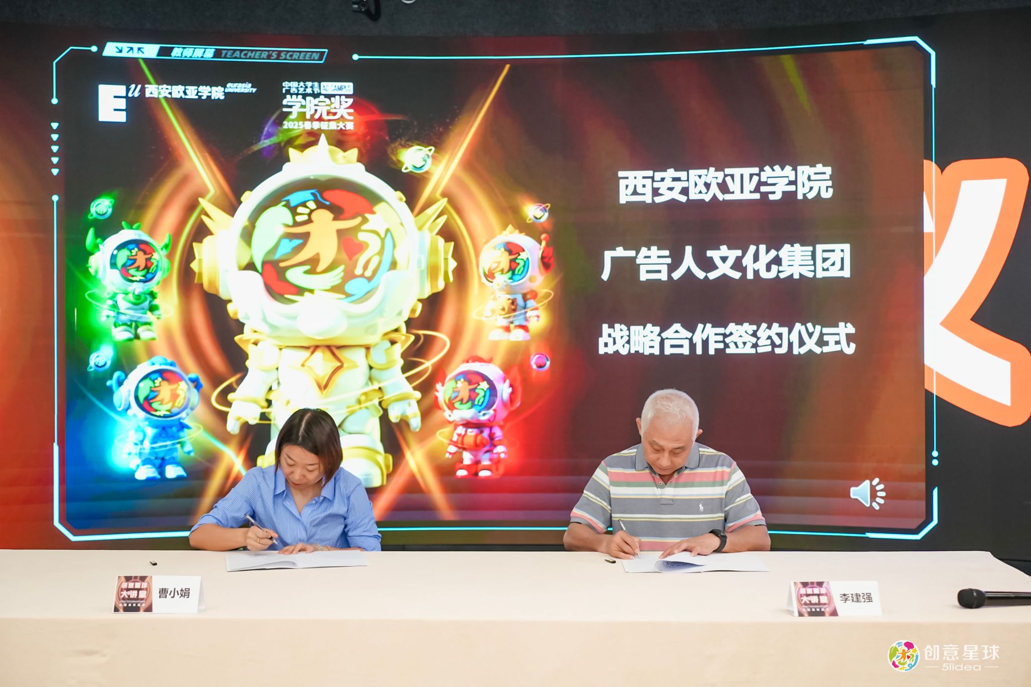 广告人文化集团副总裁李建强与文化传媒学院副院长曹小娟签署合作协议