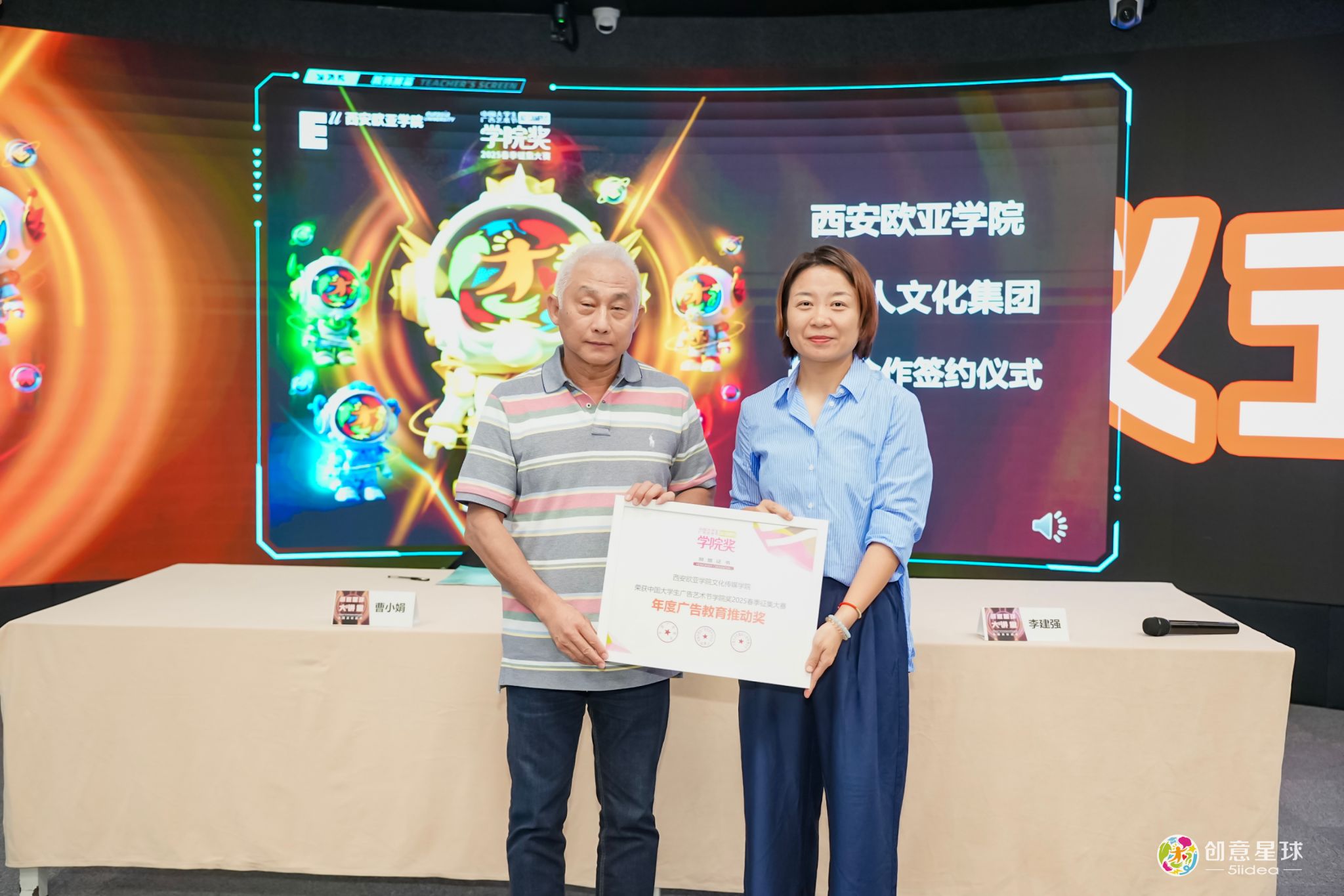 活动仪式上,广告人文化集团副总裁李建强与文化传媒学院副院长曹小娟签署包含课程共建、师资共享、实习就业等内容的全方位战略合作协议,标志着双方将在人才培养、实践落地等领域展开深度协作。随后,组委会向文化传媒学院颁发 “广告教育推动奖”,以表彰其在创新型人才培养中搭建产教桥梁、促进教育成果转化的突出贡献。