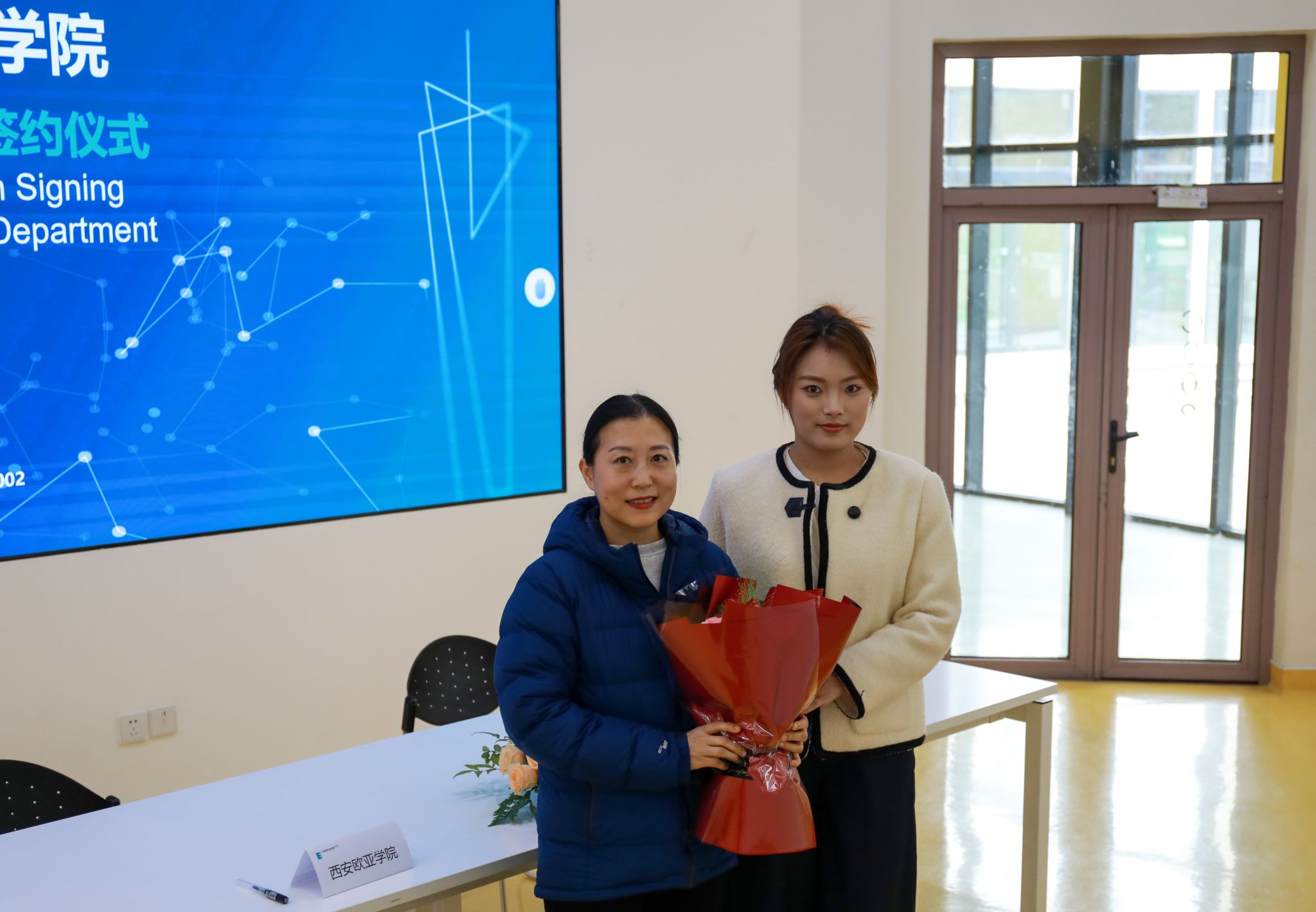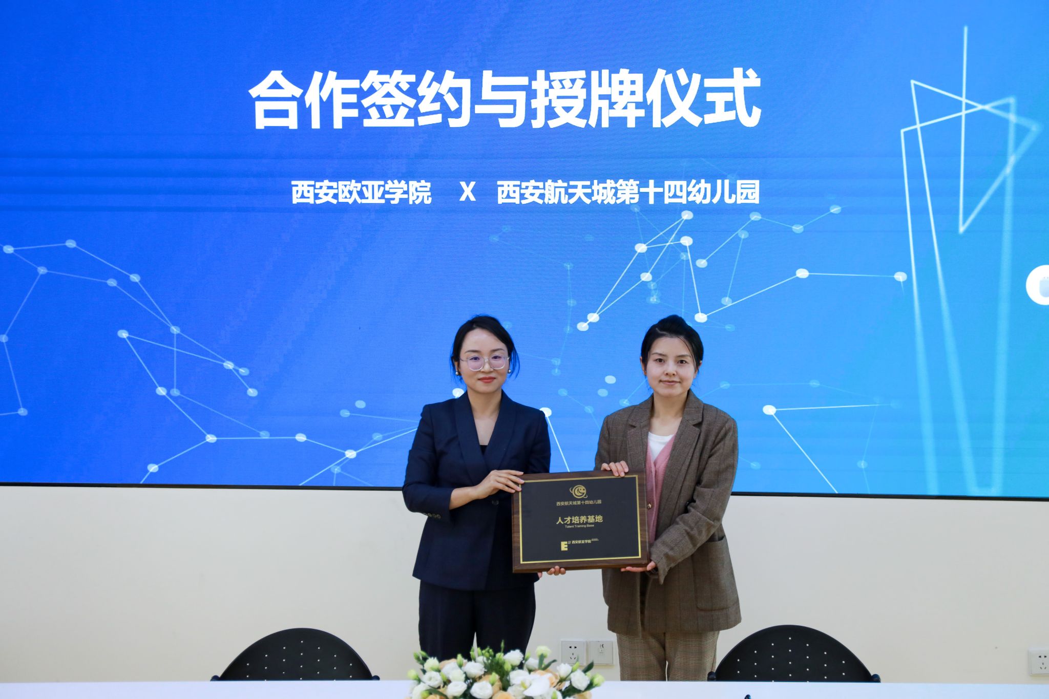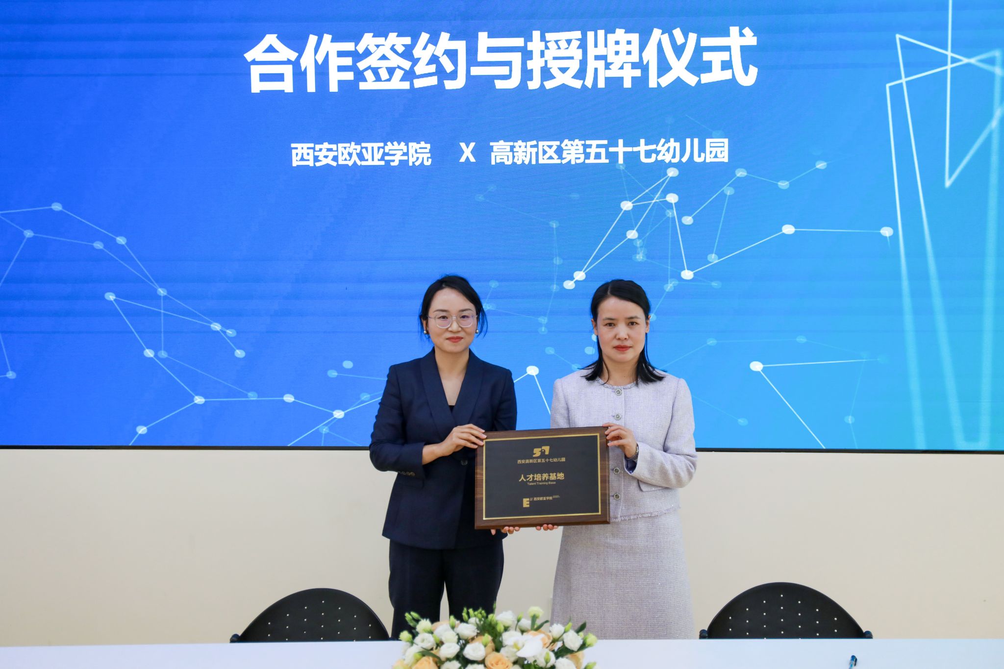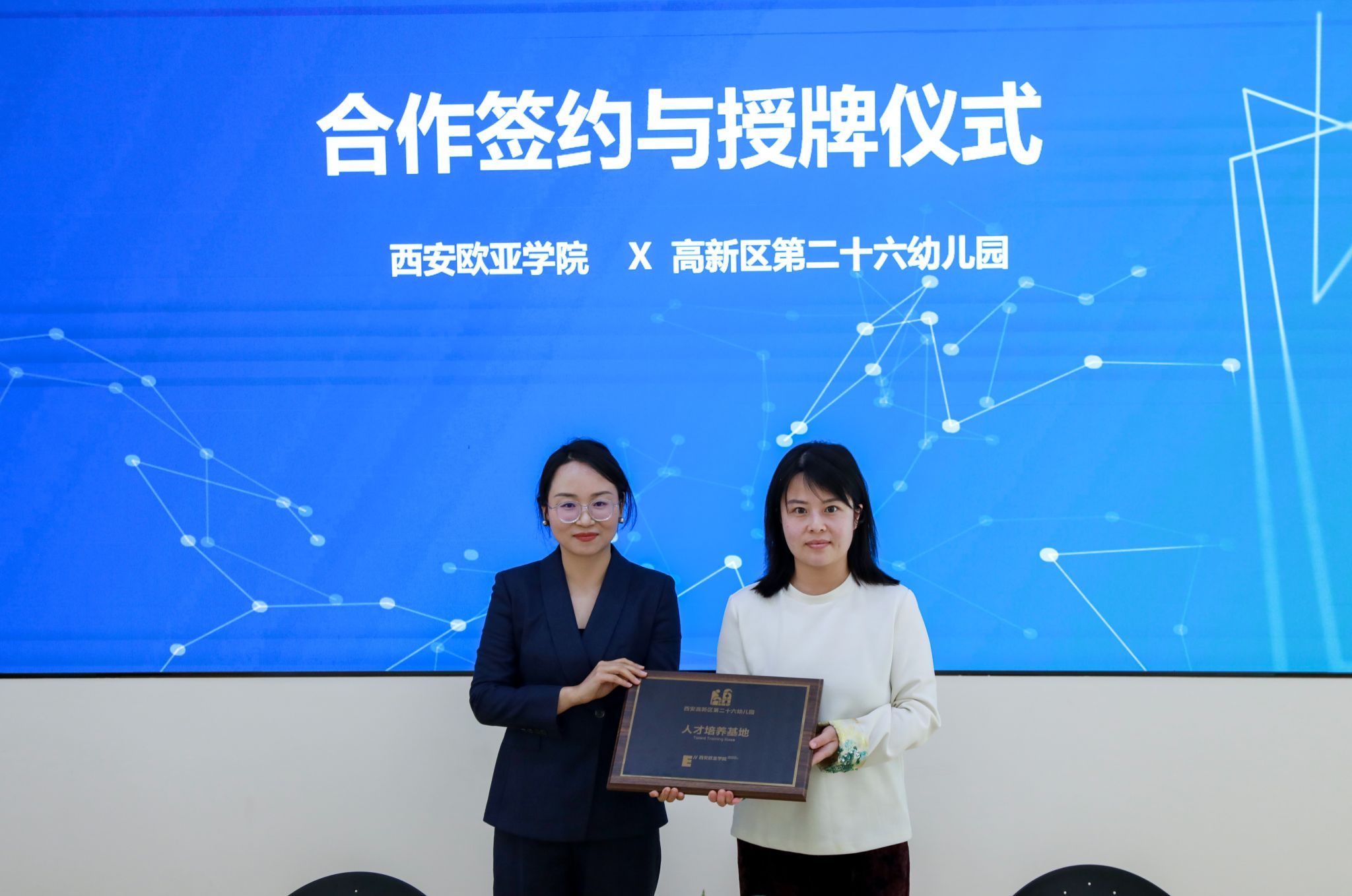 签约仪式上,欧亚学院职业教育学院小学教育、学前教育专业的优秀实习生分享了实习过程中的深刻体会。小学教育专业2301班的王晨怡,有幸在西安高新区第十八小学实习,在教学与班级管理上均颇有心得,如创设情境教学、建立个性化档案等,收获 “教学相长” 的体悟。学前教育专业2306班常译元在西安市高新区第二十三幼儿园实习时,在老师悉心指导下,其重新构建教学认知,以游戏和观察为指引,助力幼儿表达与成长 。