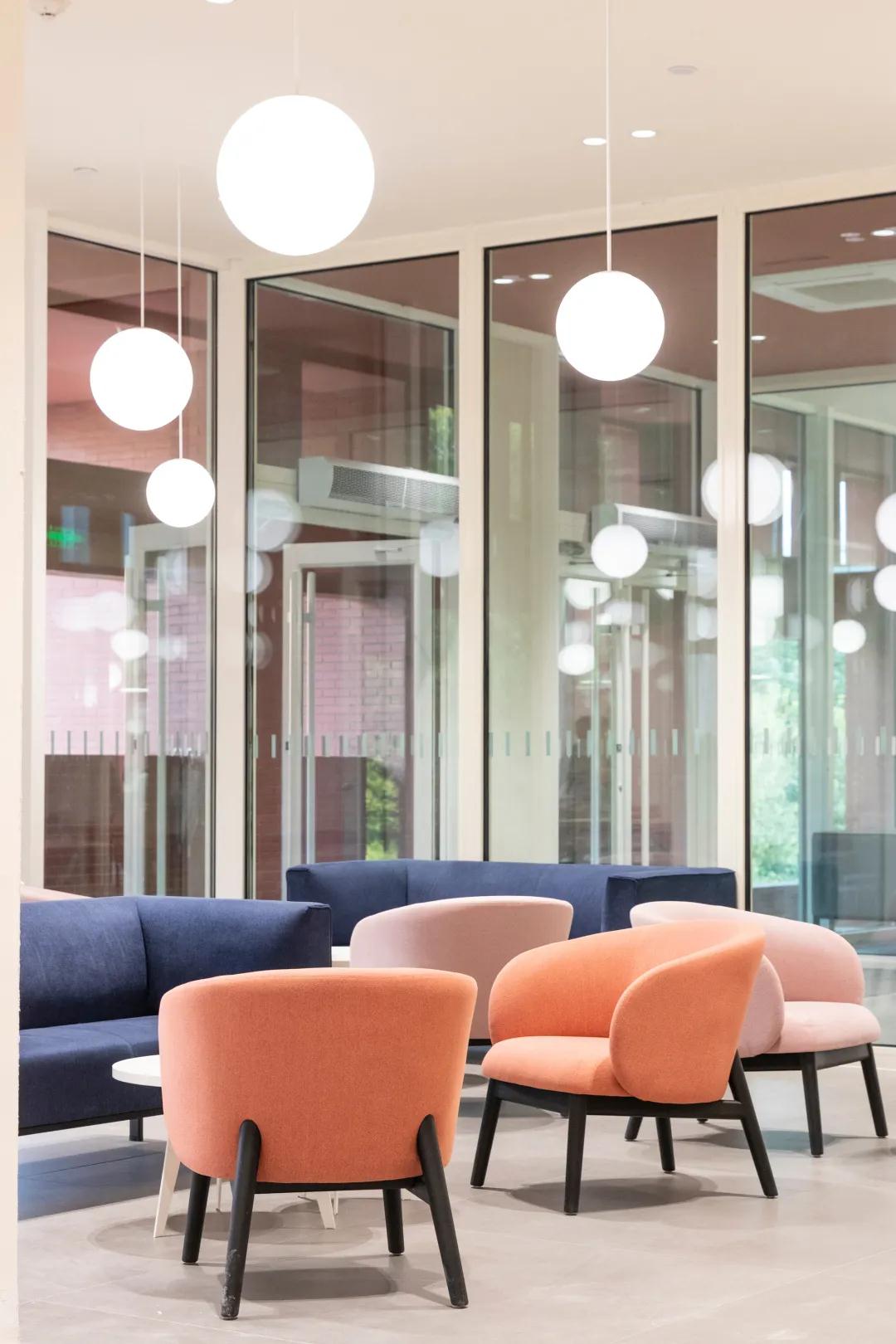 沙发、座椅、卡座、地台等,让虹桥学生中心成为自带人文关怀的交流厅,满足学生会客需求。