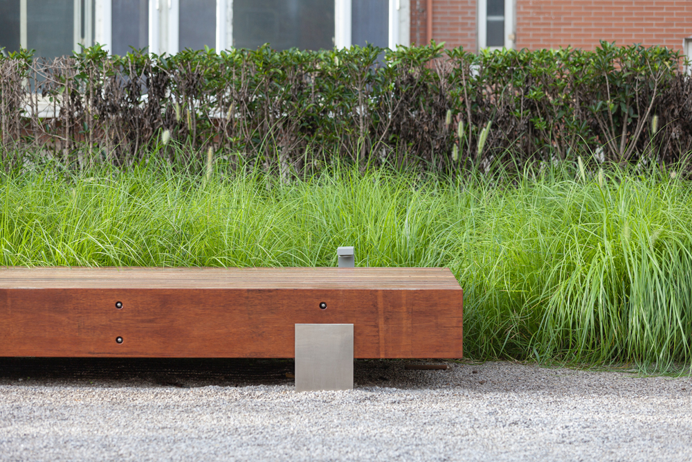 掘弃道牙、市政化绿篱,张唐景观事务所创新引入长廊、木质家具等装置与设施,令道路、景观、家具、使用者成为没有隔阂的完整统一体。