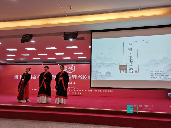 在决赛期间,赴京的老师和同学们分秒必争地讨论答辩方案,撰写答辩演讲稿,制作和修改演示文稿,为了达到最好的展示效果,三位同学答辩前一天晚上还在修改展示用的视频,上台前再次熟悉稿件,把握答辩的时间点。功夫不负有心人,经历了一学期的创作,三个月的初赛,两天高强度的决赛,闫鑫博、郭旗、傅丹莉的《青铜•王者之器》荣获电子类模拟书三等奖。