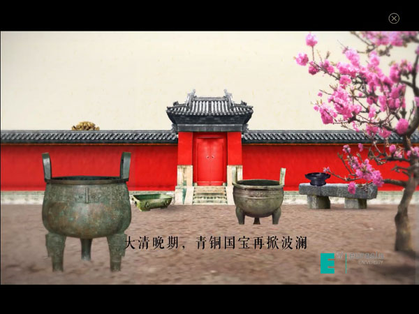 《青铜•王者之器》是一部讲述“晚清四大国宝”——大盂鼎,虢季子白盘,散氏盘,毛公鼎的富媒体交互电子书。作品对于四件青铜器的介绍采用了统一的体例,将内容编排为“前世面纱、近代浮沉和当代瑰宝“三个部分展开,每个国宝的介绍页面操作简便,浑然一体。对国宝铭文也做了对译,读者仅需按压便可轻松看到铭文的现代字形,既有趣又有料。