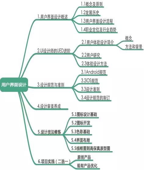 3、设计规范与准则两个模块:学生能够有基本的设计素养,了解iOS与Google的设计规范和十大设计准则。