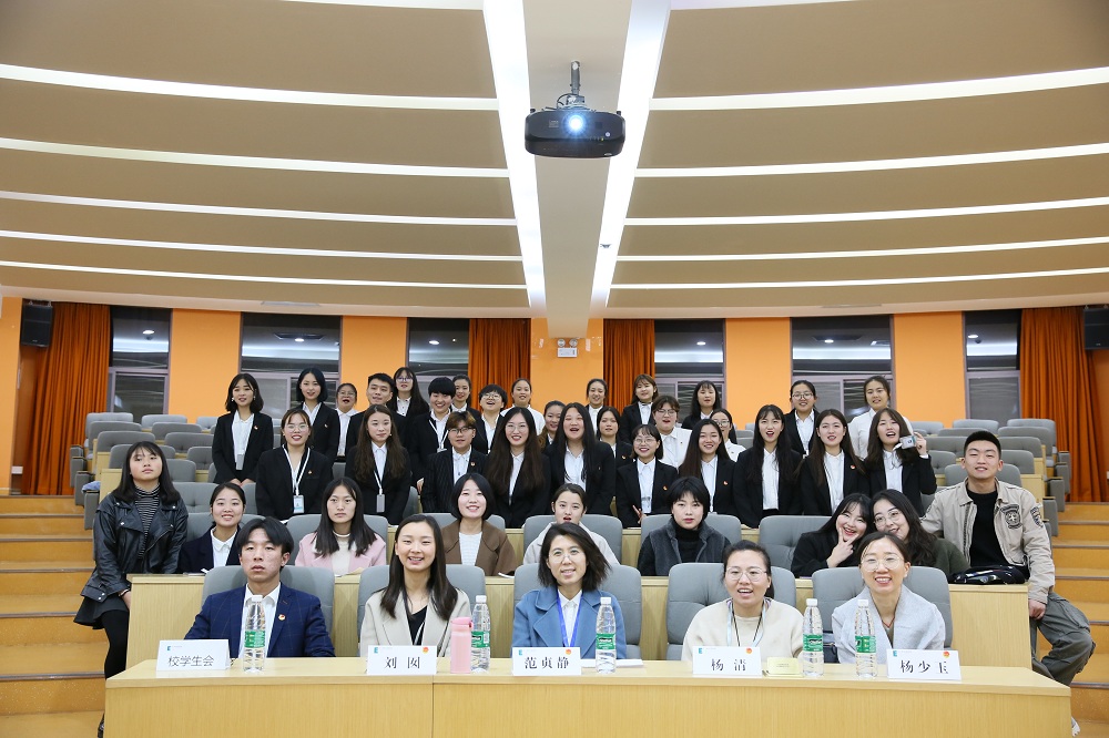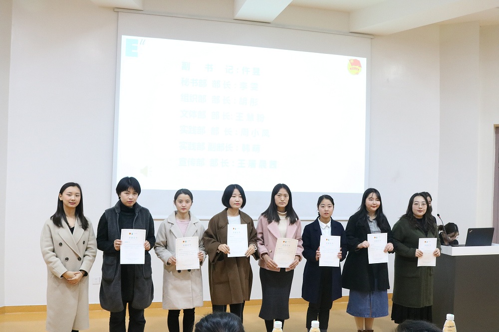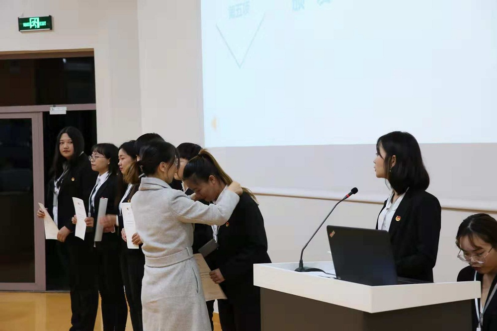 杨清老师、杨少玉老师为她们颁发聘书并佩戴工作牌