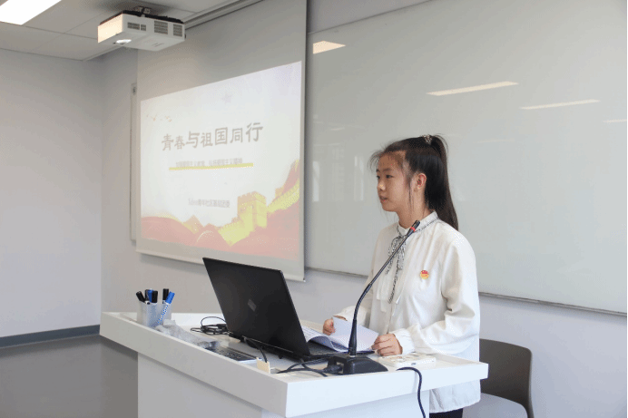“青年的理想信念关乎国家未来。远大的理想、坚定的信念,是一个国家、一个民族无坚不摧的前进动力。港珠澳大桥总设计师林鸣,十年如一日潜心研究,只为连接海峡两岸。百年来,在中国共产党的旗帜下,一代代青年把青春奋斗融入党和国家的建设中,成为实现中华民族伟大复兴的先锋力量。”红色主讲人周瑞瑞同学由点及面,真情淌涌。