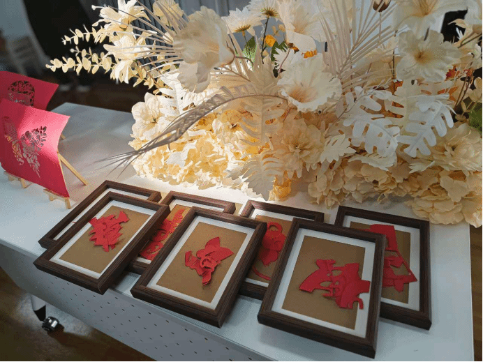 同学们以小组为单位参与剪纸拼图活动,一起将剪纸拼好后放入像框内,并将其摆在展示区域。整个活动旨在通过团队合作和创意表达,让参与者在享受剪纸乐趣的同时,深化对传统文化的认识,提升审美和协作能力。