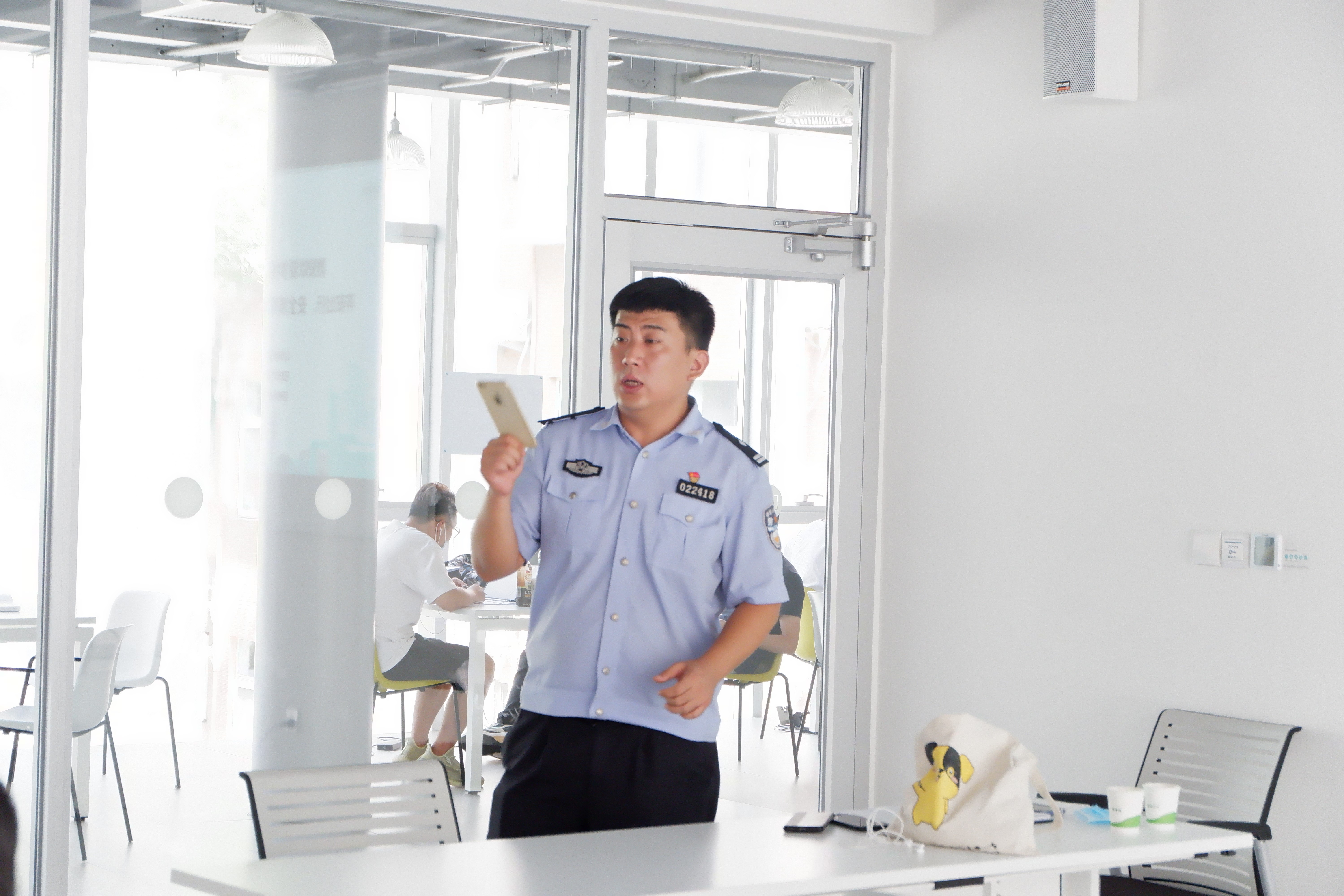 夏季是各类安全事故多发季节,暑假即将来临,高校迎来期末考试、毕业生离校等工作,同学们在紧张繁忙的学习生活中,会遇到各种安全问题,面对突发状况时,如何应对、处理,怎么能更好的保护自己,减少不法伤害和个人财产丢失?汪磊副大队长邀请师生现场实景演示了“丢包袱”、“甩麻袋”、“猜猜我是谁”等街头诈骗、扒窃行为,帮助同学们更加从容应对各类安全问题。