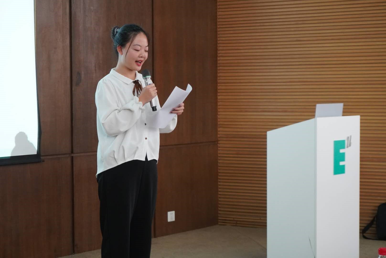 颁奖环节结束后,Ivy社区的大一新生陈佳欣同学作为获奖代表向大家分享了她每天坚持英语学习的打卡历程,以及开学以来对sunbet申慱官网和Ivy青年社区的真切感受。