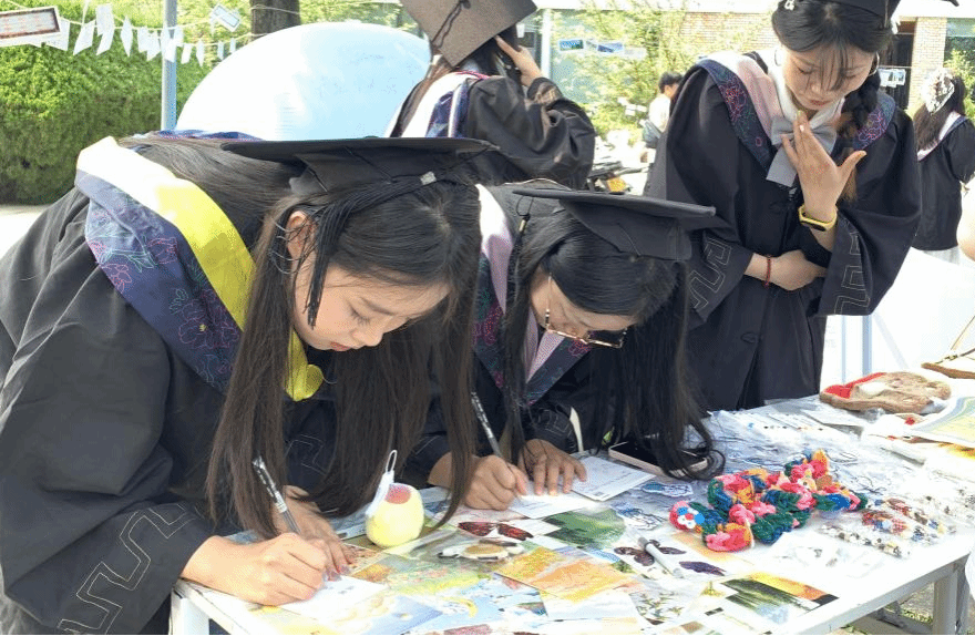 活动现场,充满着温馨与惊喜。师生互赠留言卡环节,为毕业生们和辅导员们准备了精美的明信片。那些课堂内外的教诲、陪伴与成长,不妨凝于笔端。在留言卡上,写下对彼此的感谢、祝福,或是藏在心底的故事,让师生情谊,借这一方卡片,再添温暖注脚。