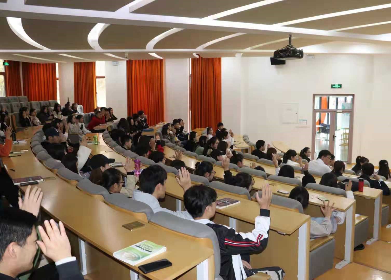 随后校团委书记董杨老师致辞并发表讲话,董书记指出共青团是党领导的先进青年的群团组织,是党的助手和后备军,是广大青年在实践中学习中国特色社会主义和共产主义的学校,并号召广大青年要做信念坚定的传承者、学以致用的实践者和服务他人的笃行者。
