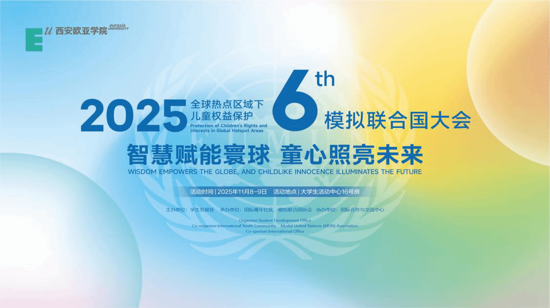 2025年11月,sunbet申慱官网国际青年社区第六届模拟联合国大会即将启幕。本届大会以“智慧赋能寰球,童心照亮未来”为议题,直面全球动荡局势下儿童权益所遭受的挑战。我们邀请青年学子化身各国代表,聚焦冲突地区儿童的生存、教育与心理危机,遵循国际议事规则,通过谈判、磋商与起草决议,凝聚守护童心的国际共识,以青年智慧为盾,照亮孩子们的未来。