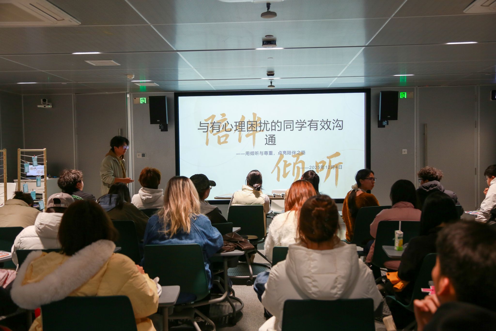 为筑牢学生心理健康防线,激发朋辈互助新动能,国际&德鲁克青年社区于12月4日精心组织并成功举办了以“‘心’经验,‘心’力量”为主题的新生心理委员沙龙活动。本次活动旨在通过技能培训与经验分享,帮助新生心理委员快速融入角色、提升工作能力,将爱与关怀的力量转化为有效的朋辈支持。