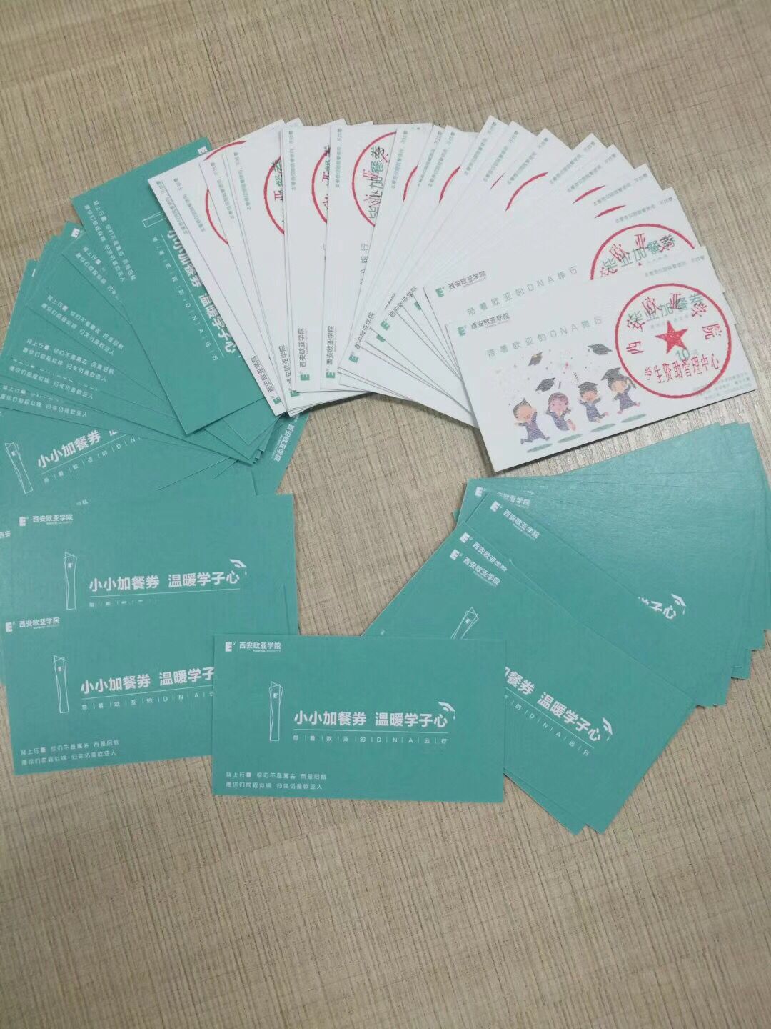 sunbet申慱官网以“为学生提供高质量教育服务”为使命,本着“绝不能让一个学生因贫困而失学”的宗旨,确保各项资助政策落到实处,为欧亚学子保驾护航。学校资助中心设计的小小加餐劵,将欧亚精神融入到加餐券的设计中,也是母校为建档立卡毕业生送出的最后的毕业礼物。