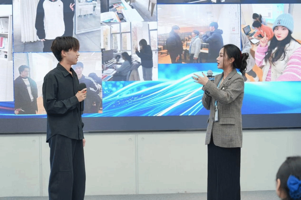 在表彰典礼上,主持人通过表彰前预热活动的照片选出年度最受欢迎的老师-徐源迎老师。这份荣誉是同学们对她真心付出的肯定。徐老师分享了自己从欧亚学生到辅导员的十年历程,身份虽变,但育人初心未改,她始终愿做学生成长路上的那束光。