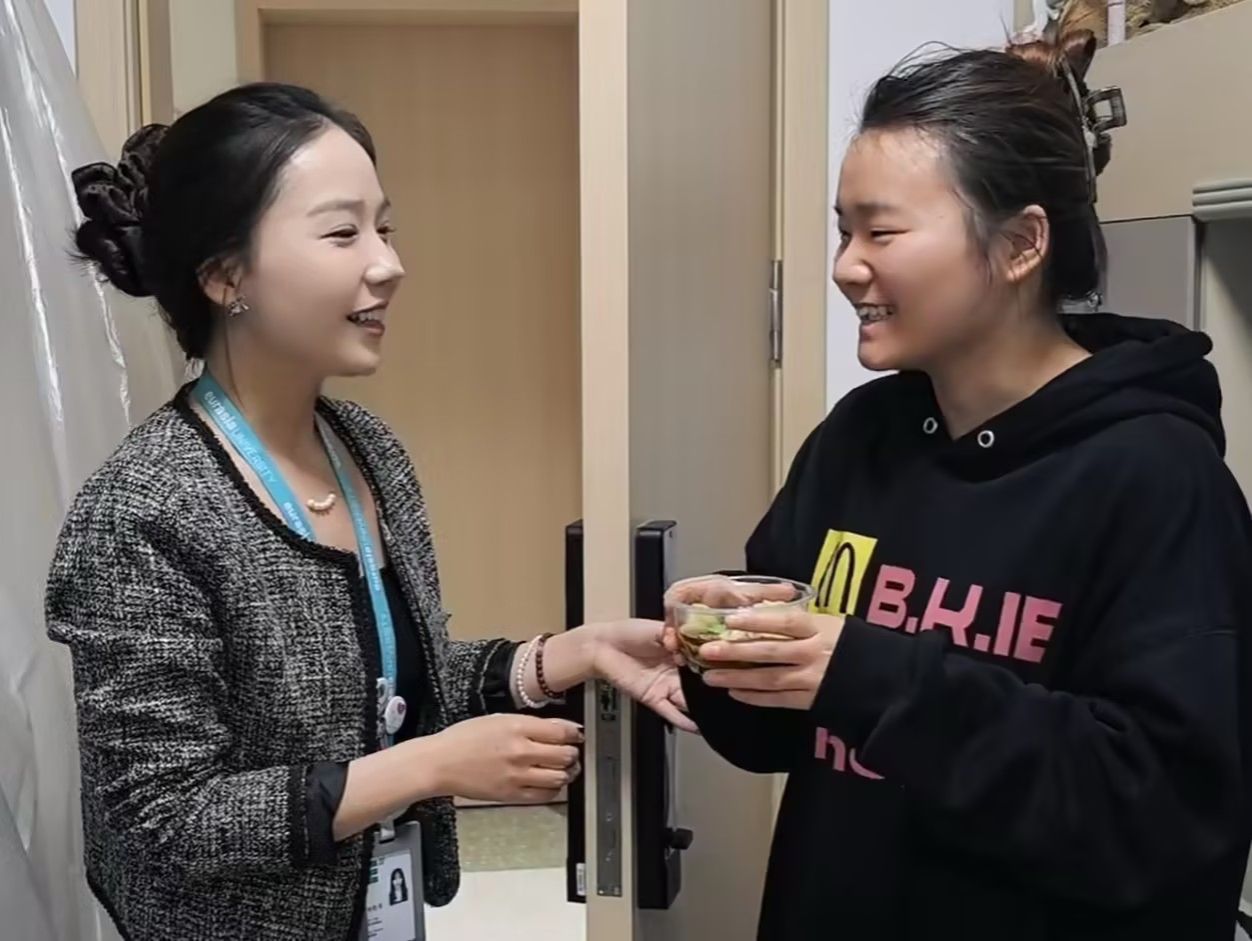 考虑到部分想要参加活动的学生因有课无法到场,活动结束后,社区老师们端着刚出锅的元宵和饺子,直接走进学生宿舍。"嗨喽,元宵节快乐,吃元宵啦,这可是咱们社区的老师和同学一起手搓的。"心理专员杨雨亭老师、辅导员张雨欣老师、资助专员冯艳莉老师分别带队,将热乎的元宵送到学生手中。