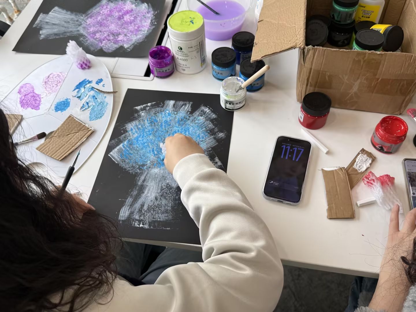 "365同行计划"作为Xdea青年社区师生共成长的重要载体,始终倡导"每一天都有陪伴,每一步都有成长"的理念。在这个特别的日子里,让师生共同制作一份送给自己的礼物。老师与同学结成"创意搭档",共同投入到丰富多样的手作体验中:黏土花与扭扭棒花束制作中,柔软的材质在师生的配合下幻化为华丽绽放的花朵;绘制手掌花中,师生以手为模,绘就"携手同行"的生动图景;满天星花束与纸团花制作中,师生相互交流与配合,点点繁星般的作品在协作中绽放。