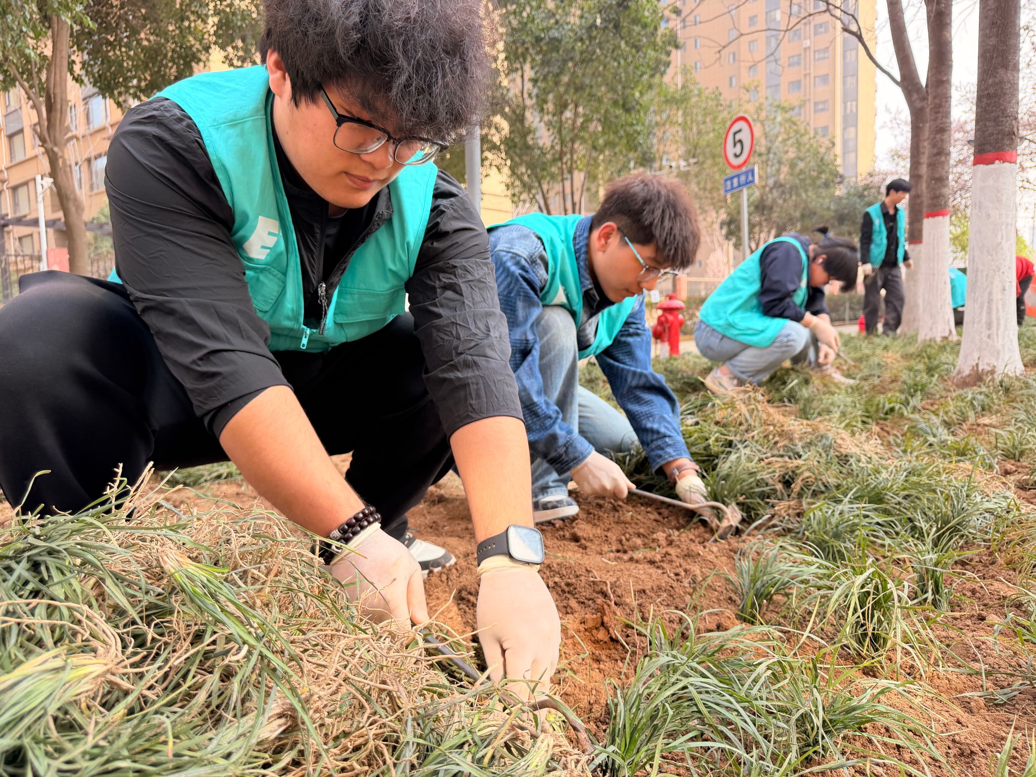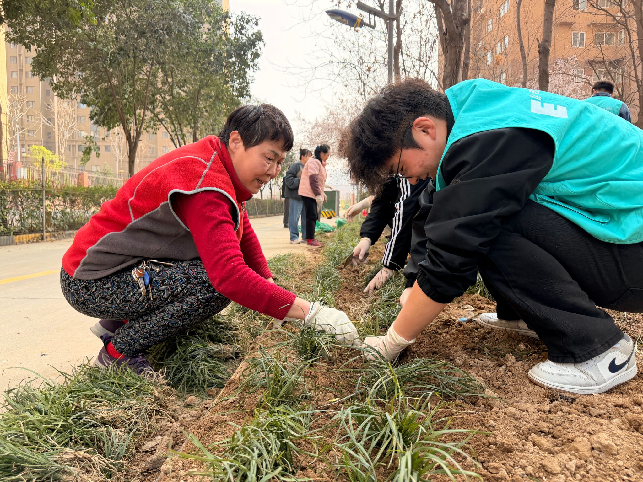 本次活动选址西姜欣居社区公共绿化区域。活动现场,同学们热情高涨,挥锹铲土、撒籽铺草、挖坑定植,每一个环节都一丝不苟——从草地的悉心铺设,到玫瑰的精心栽种,劳动的身影与初绽的花蕾相映成趣。经过一下午的辛勤劳动,新栽草木迎风挺立,为西姜欣居社区增添了一抹盎然生机。