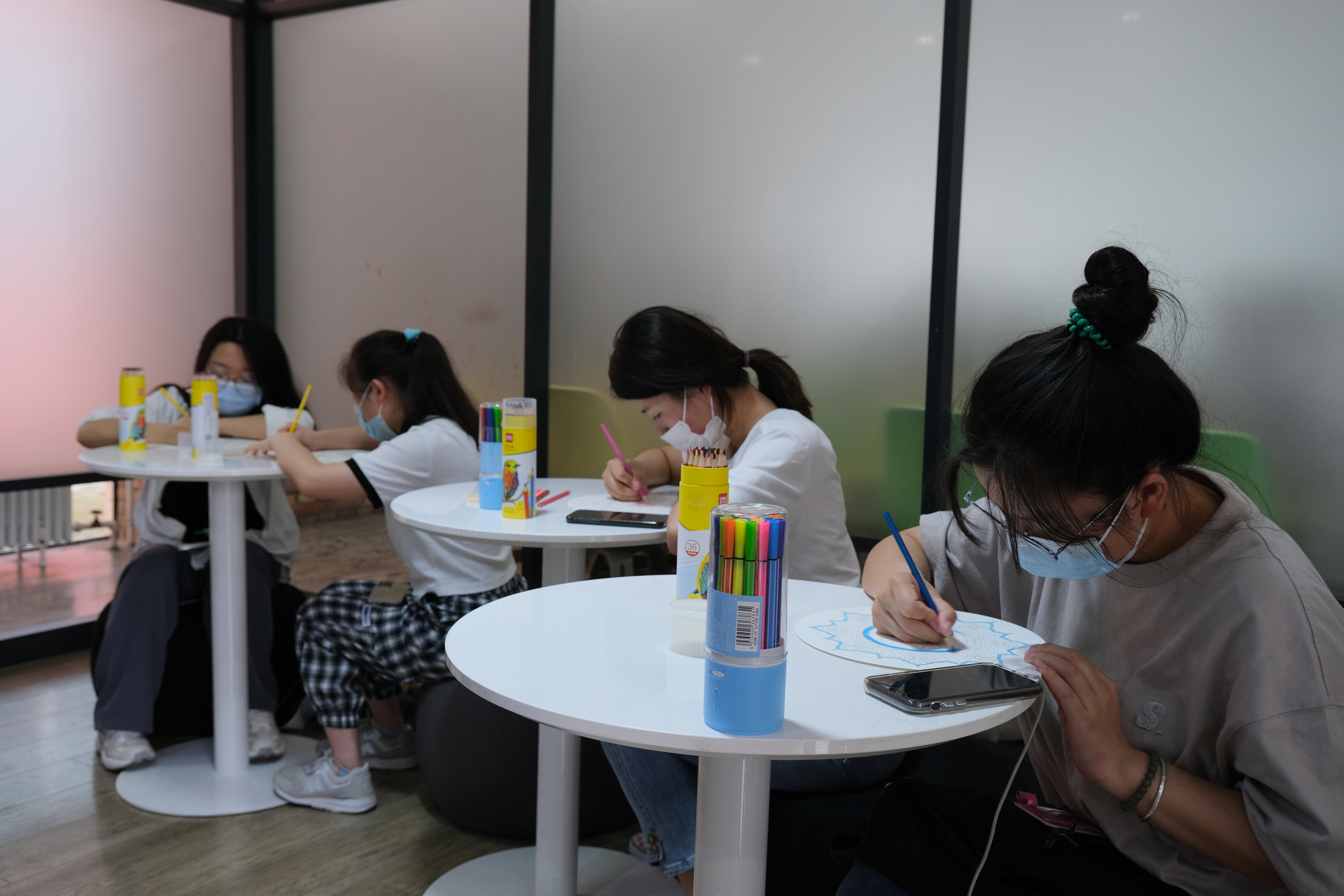 “曼陀罗绘画”也是大家非常喜爱的项目,学生心理咨询中心为同学们提供了不同图案的绘画卡和彩铅。同学们可以在画卡上随便涂,随便画,用心带动手,手带动笔,用最真实的状态表达自己,与内心对话。参与活动的同学表示这样的方法真的很减压,人会越来越静,越来越平和,也能够逐渐看清自己整合身心达成平衡状态的过程。