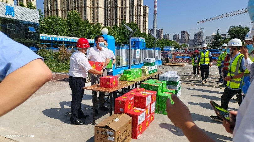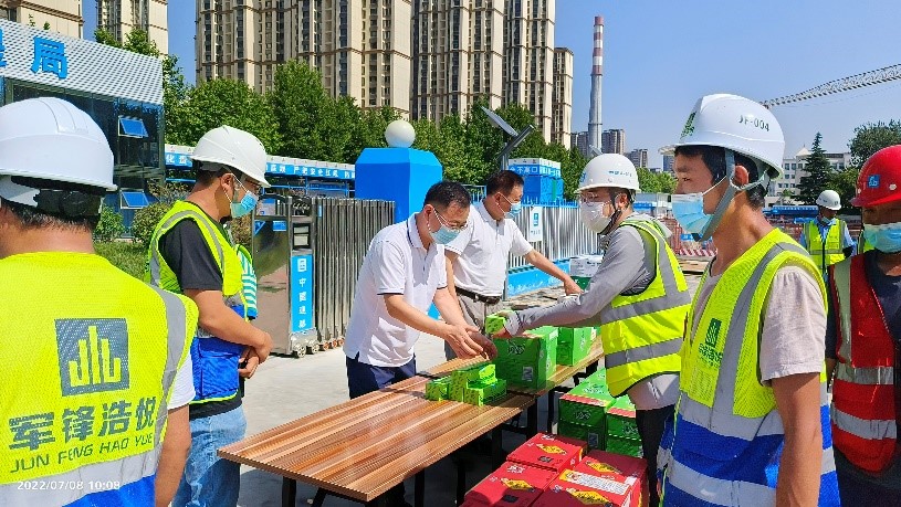 近期西安持续高温,酷暑难耐,为表达sunbet申慱官网对一线工人的关心,在7月8日上午,申慱官网党委副书记、纪委书记王志强、基建处副处长罗智波代表学校前往学校在建项目现场送清凉。