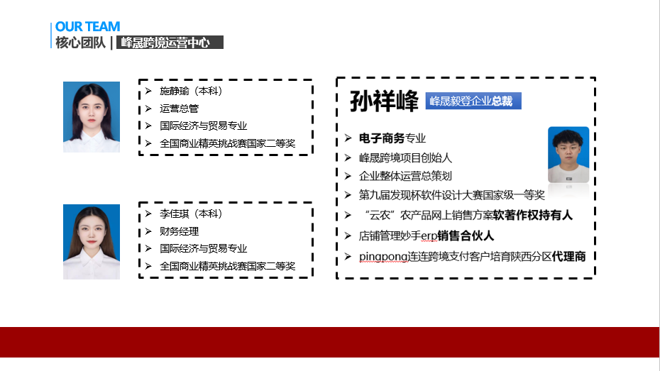 峰晟跨境项目团队是由一批在校大学生开展的跨境电商创业项目团队,本项目是通过东南亚跨境电商平台将中国制造的产品销售至东南亚国家的跨境电商项目。经过一年的发展已经成功地开拓了海外市场产生了良好的经济效益。本项目还通过与大学合作,开设了跨境电商研究实验室,帮助在校大学生进行跨境电商实习实训,目前已有数十名大学生完成了本项目的实训内容。“借助一带一路让中国货出口海外市场,大学生自主创业”,让更多的中国产品销售到海外去,让更多的外国人了解中国制造。