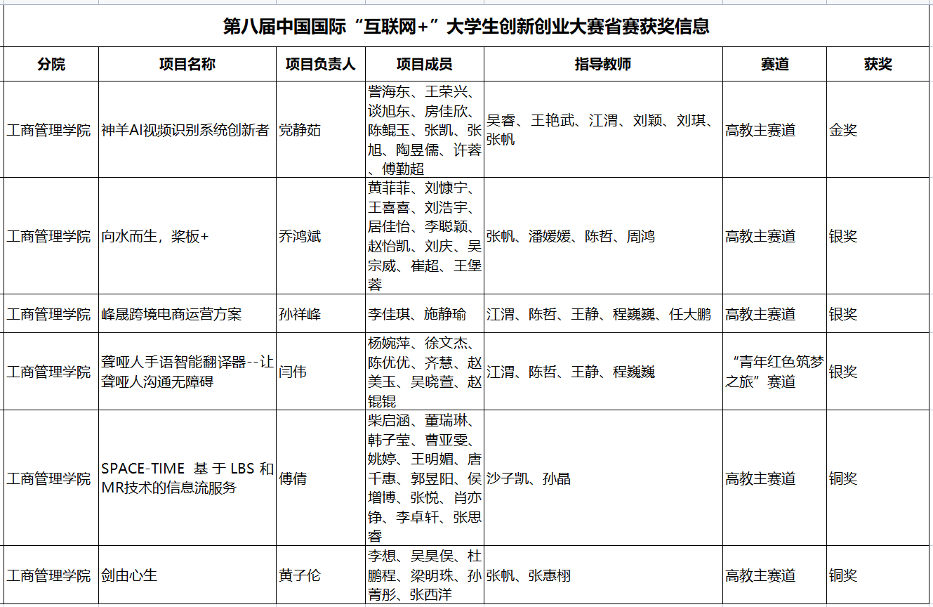 【捷报】申慱官网工商管理学院师生斩获第八届“互联网+”大赛省赛6项大奖