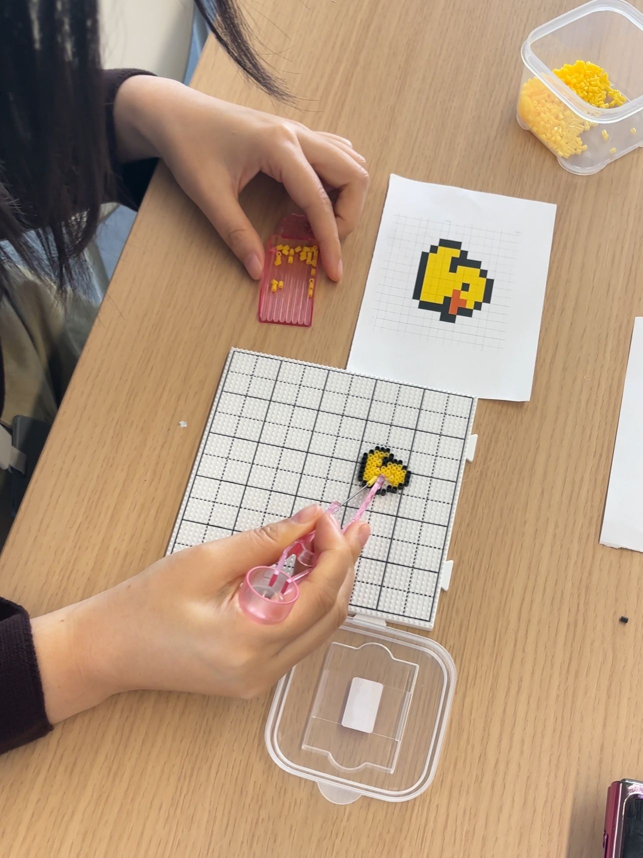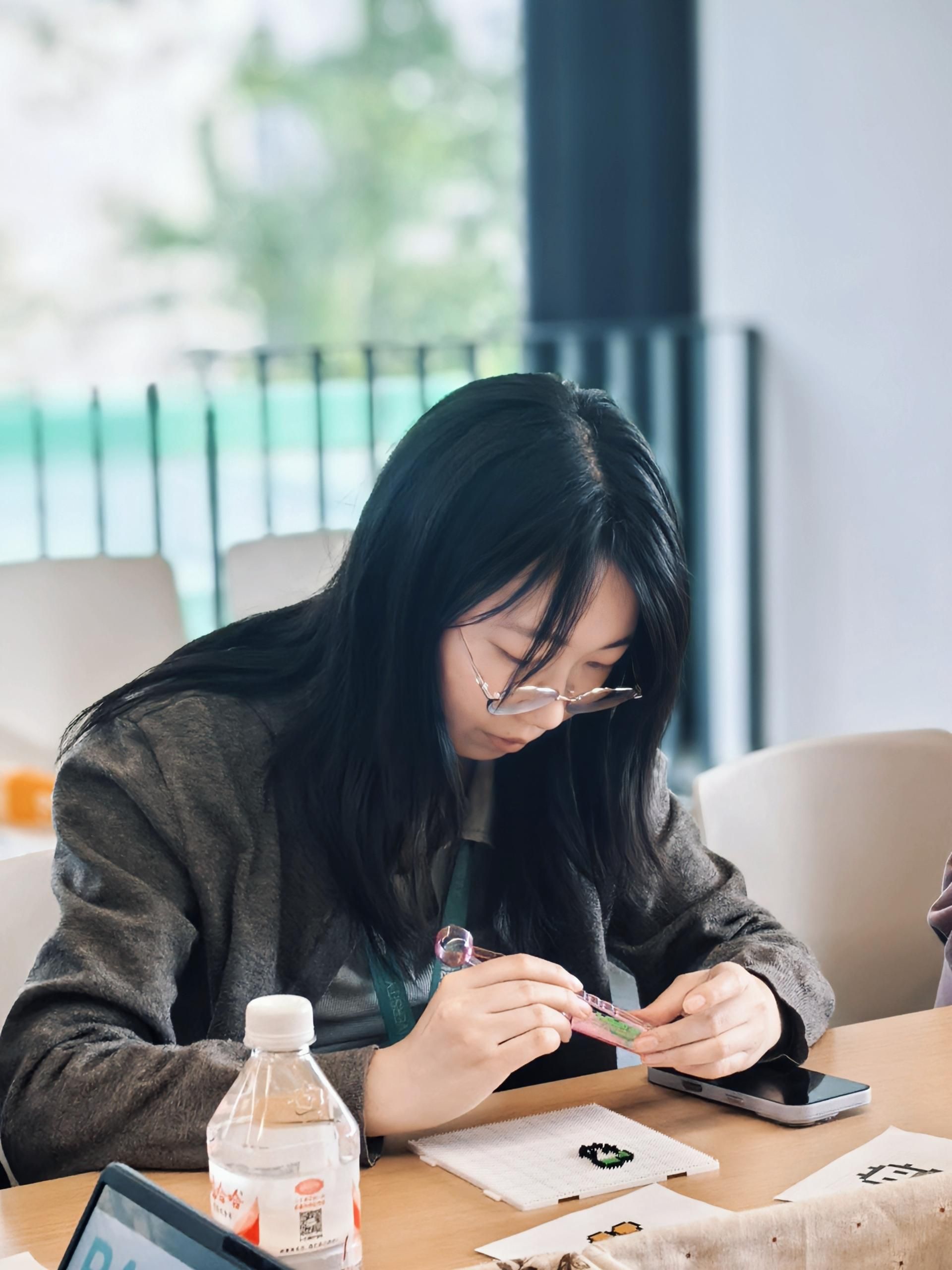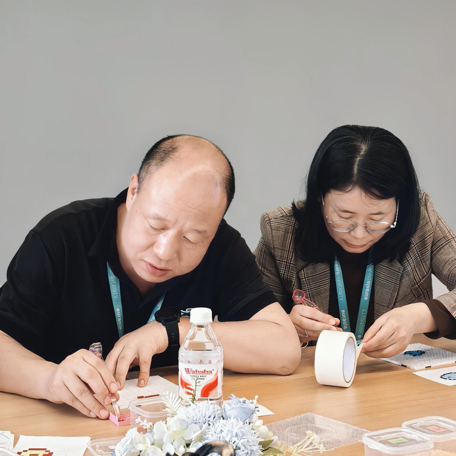 在拼豆疗愈体验环节,温馨治愈的氛围填满整个教室。辅导员们暂时放下忙碌的工作与紧绷的神经,围坐在一起,轻捏起一颗颗色彩柔和的拼豆,小心翼翼、细心排布,将零散的小颗粒在模板上慢慢拼凑、仔细调整。指尖的耐心摆放,目光专注而温柔,每一次对准与微调,都带着从容与治愈。专注创作的过程,是情绪舒缓、压力释放的过程,大家在慢下来的时光里放空思绪、疗愈心灵,在指尖的色彩与温度中,卸下疲惫、重拾力量,为后续的沟通实践与学生工作积蓄温暖与能量。