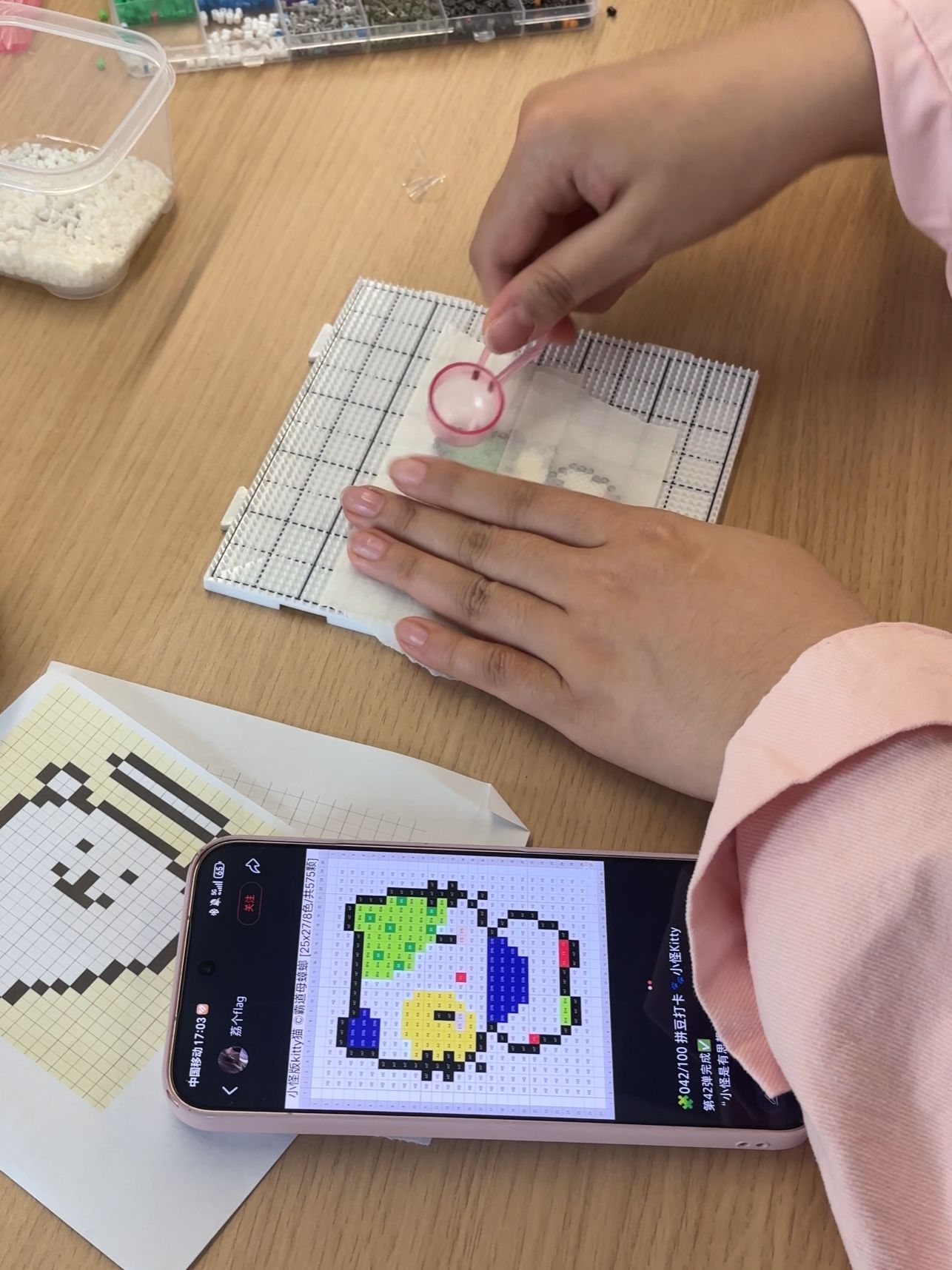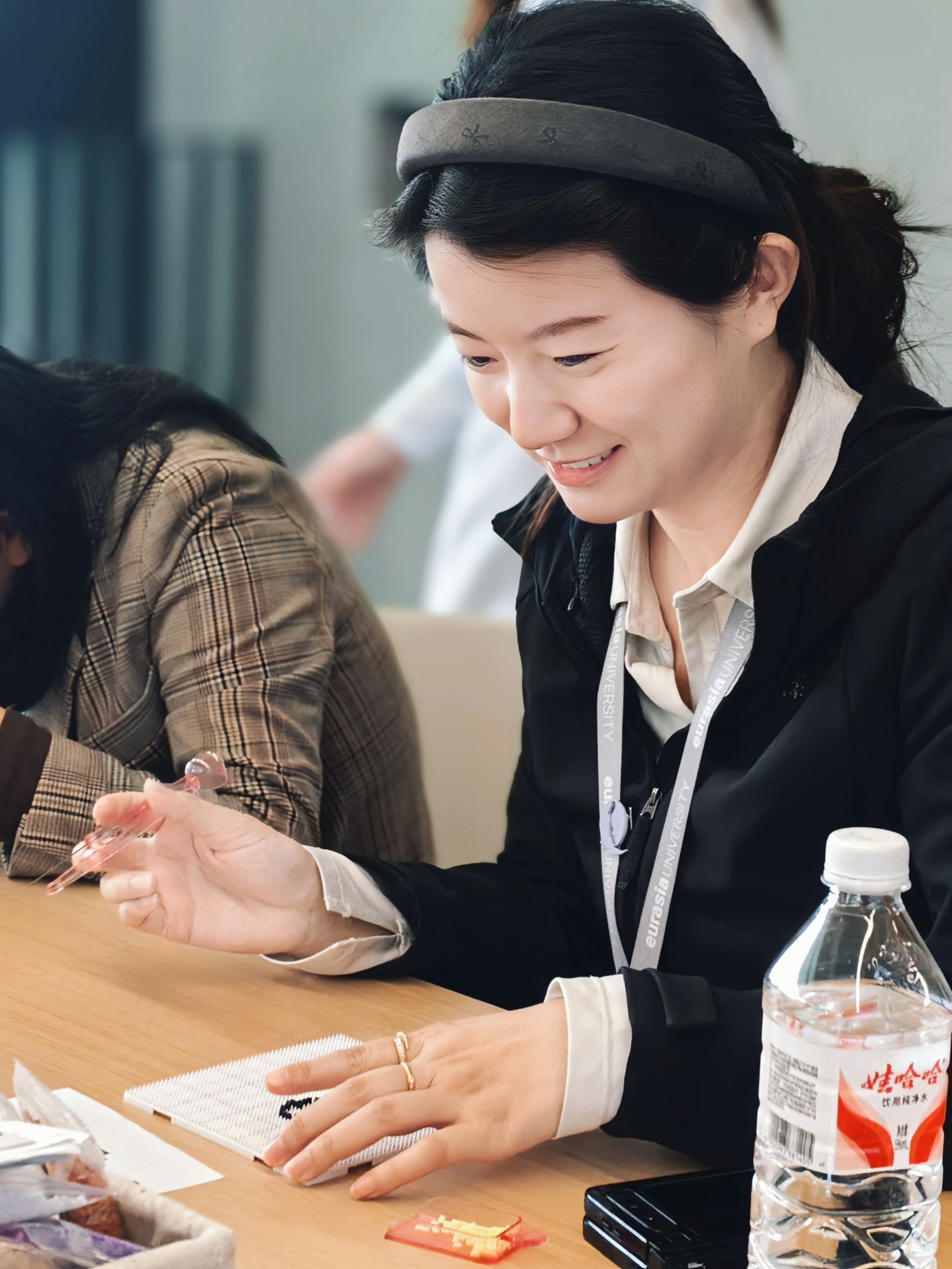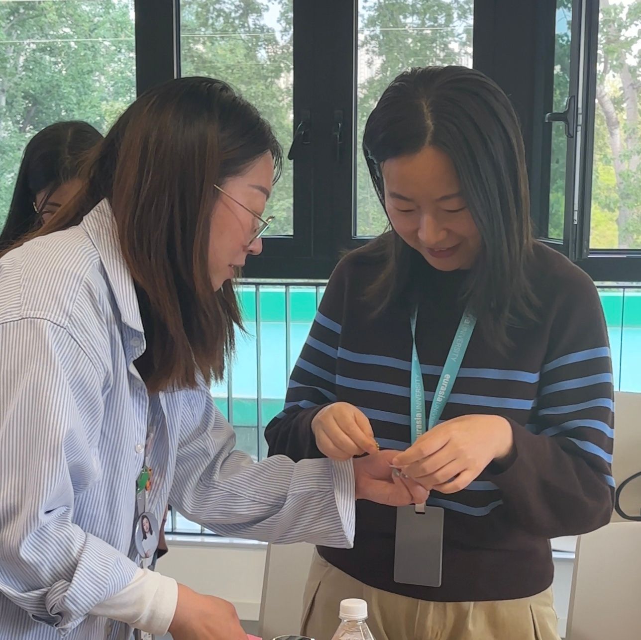在拼豆疗愈体验环节,温馨治愈的氛围填满整个教室。辅导员们暂时放下忙碌的工作与紧绷的神经,围坐在一起,轻捏起一颗颗色彩柔和的拼豆,小心翼翼、细心排布,将零散的小颗粒在模板上慢慢拼凑、仔细调整。指尖的耐心摆放,目光专注而温柔,每一次对准与微调,都带着从容与治愈。专注创作的过程,是情绪舒缓、压力释放的过程,大家在慢下来的时光里放空思绪、疗愈心灵,在指尖的色彩与温度中,卸下疲惫、重拾力量,为后续的沟通实践与学生工作积蓄温暖与能量。
