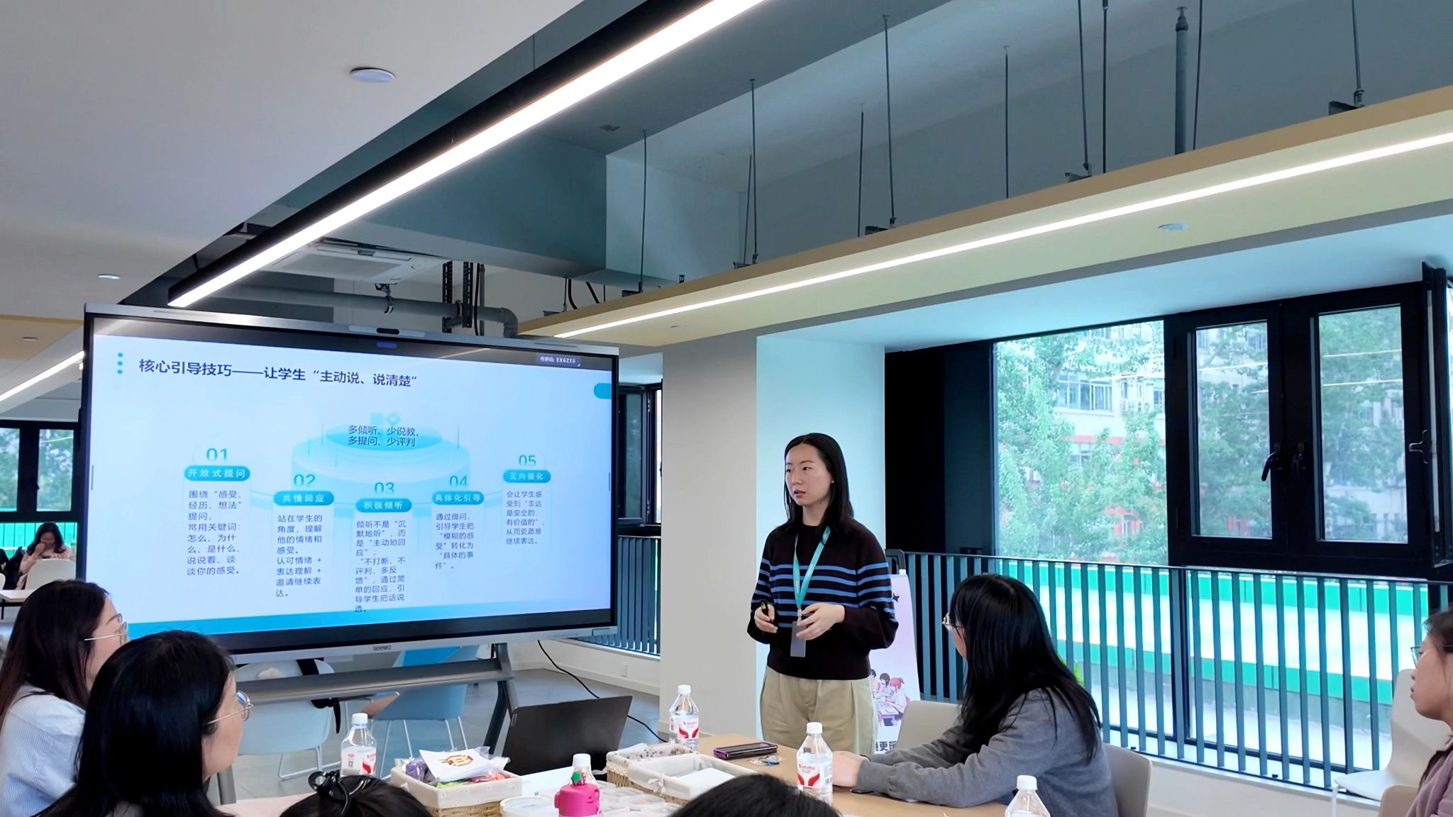 手作疗愈之后,沙龙进入核心环节——访谈技巧分享。学生心理健康中心闫新慰老师分享了五大沟通核心技巧:平等姿态、无条件接纳、开放式提问、积极倾听、共情回应,引导大家放下“管理者”身份,以倾听者、陪伴者的姿态与学生对话,让沟通更走心、更有效。大家积极参与、沉浸式练习,在互动中互相启发、共同提升。