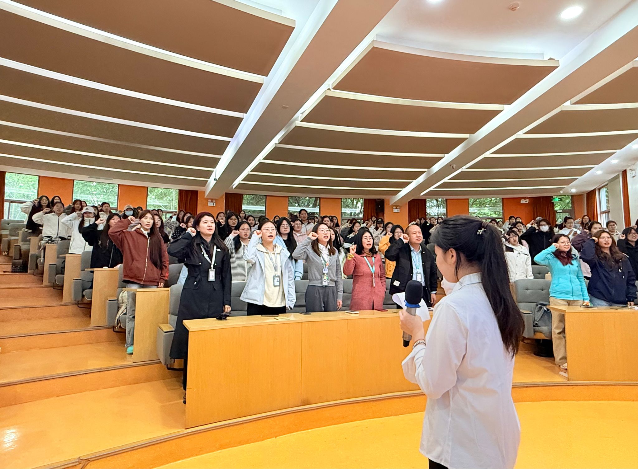 大会第五项,方阵负责人谢雨涵老师、团体操负责人张庚老师依次发言,分别介绍方阵与团体操的训练情况,叮嘱参演人员认真排练,同时对运动员进行鼓励和关心,勉励大家以饱满精神、昂扬风貌圆满完成各项展演任务,保障赛事表演平稳有序、精彩呈现。