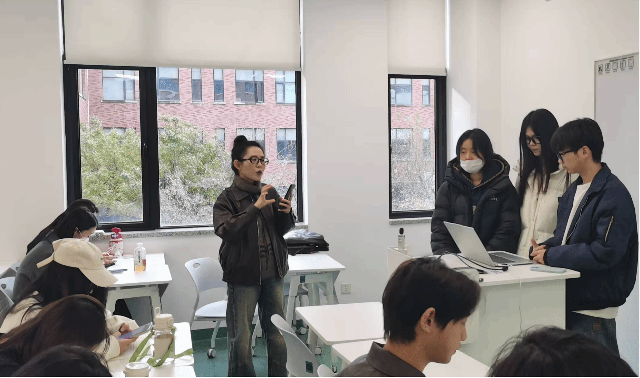 正是基于这些真切的需求,一场精心设计的 “沟通与表达”系列工作坊在4月-5月间开展。写作教师颜珺从“为什么我妈更爱邻居家小明”的生活案例切入,带领学生拆解沟通中的情感与逻辑;苏石磊老师则将“如果你中了500万”的面试题,变成了一场职业动机与价值观的深度探索;黄馨平老师通过“职场黑话”解读和情景模拟,让学生提前感知办公室的沟通密码;彭博老师则借助文化维度模型,引导学生在跨文化角色扮演中理解差异、寻求共识。