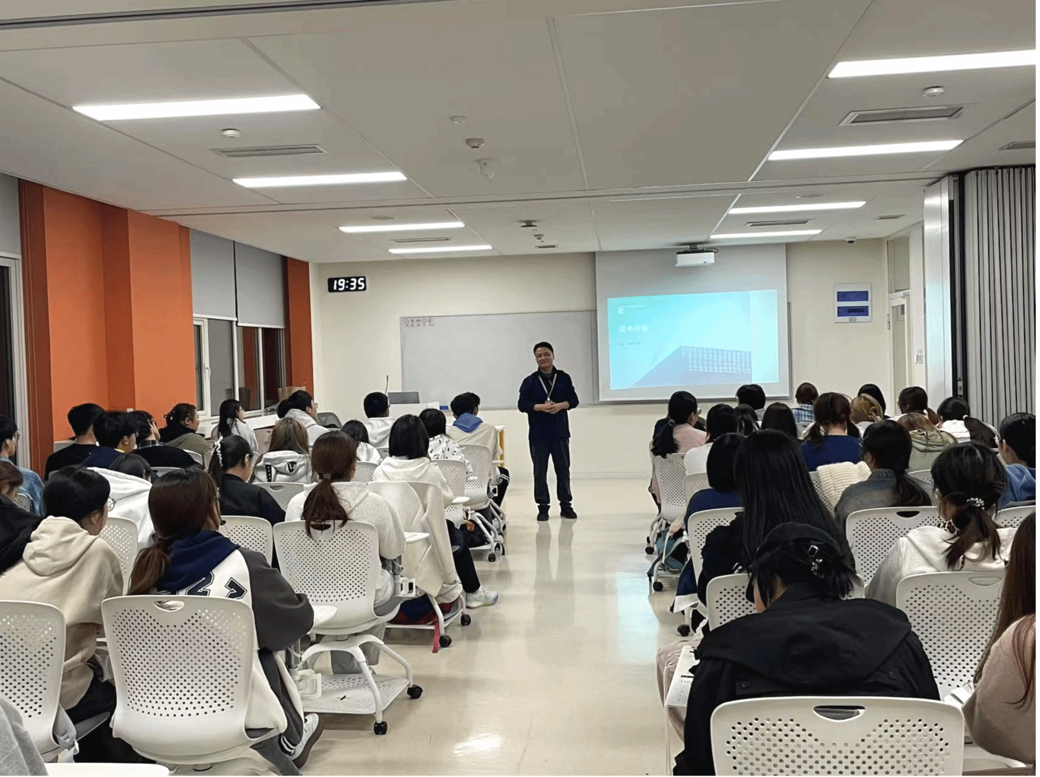 10月13日—14日,通识教育学院张盈、宝丽格两位老师,为人文教育学院的同学们带来了两场“读书分享”活动。 张盈老师分享的书籍是 “现代管理学之父” 彼得・德鲁克的《人与商业》。该书以社会生态学思想为核心,将人、思想、商业、行为视为整体,探讨人与商业的过往、当下及未来,揭示社会、商业、经济构成的动态不均衡人文环境特性。老师在分享中结合书中内容,围绕大规模生产下的技能转变、东西方决策差异、美国教育理念等方面谈了收获与思考。宝丽格老师则分享《重访三种文化中的幼儿园》,通过播放纪录片《他乡的童年》,围绕不同文化背景下的教育选择展开讨论,加深了同学们对各文化体系内在目标和价值取向的理解。在晚自习的专注时光里,老师与学生共读好书,畅谈心得,在文学与思想的浸润中,悄然滋养着学生的人文底蕴与表达自信。