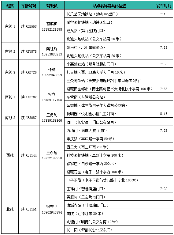 公务车服务已恢复正常,通勤车服务于3月25日起恢复正常,具体运行站点及时刻表如下: