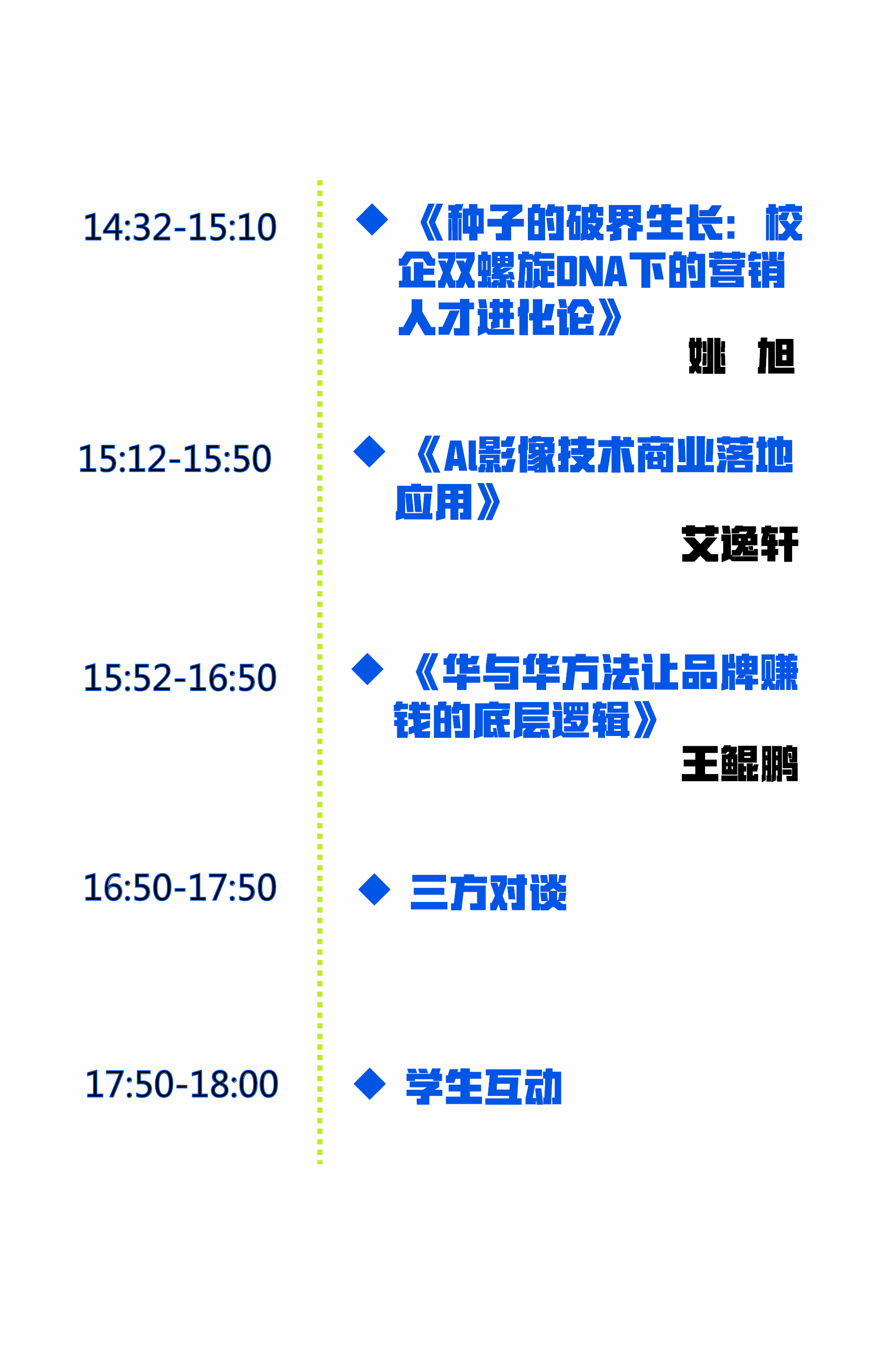这里有AIGC研究所首席专家揭秘下一代生成式AI临界点的技术派,有品牌咨询指挥官亲自拆解从Prompt到Profit商业闭环的实战派,还有高校教授分享校企双螺旋结构下营销人才升级的学术派。