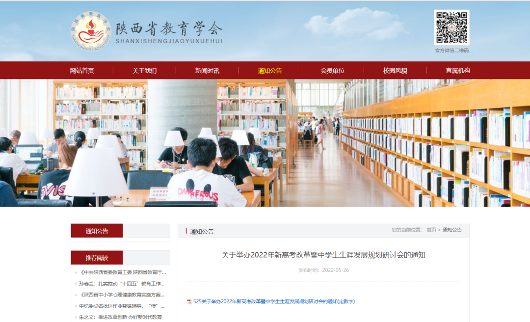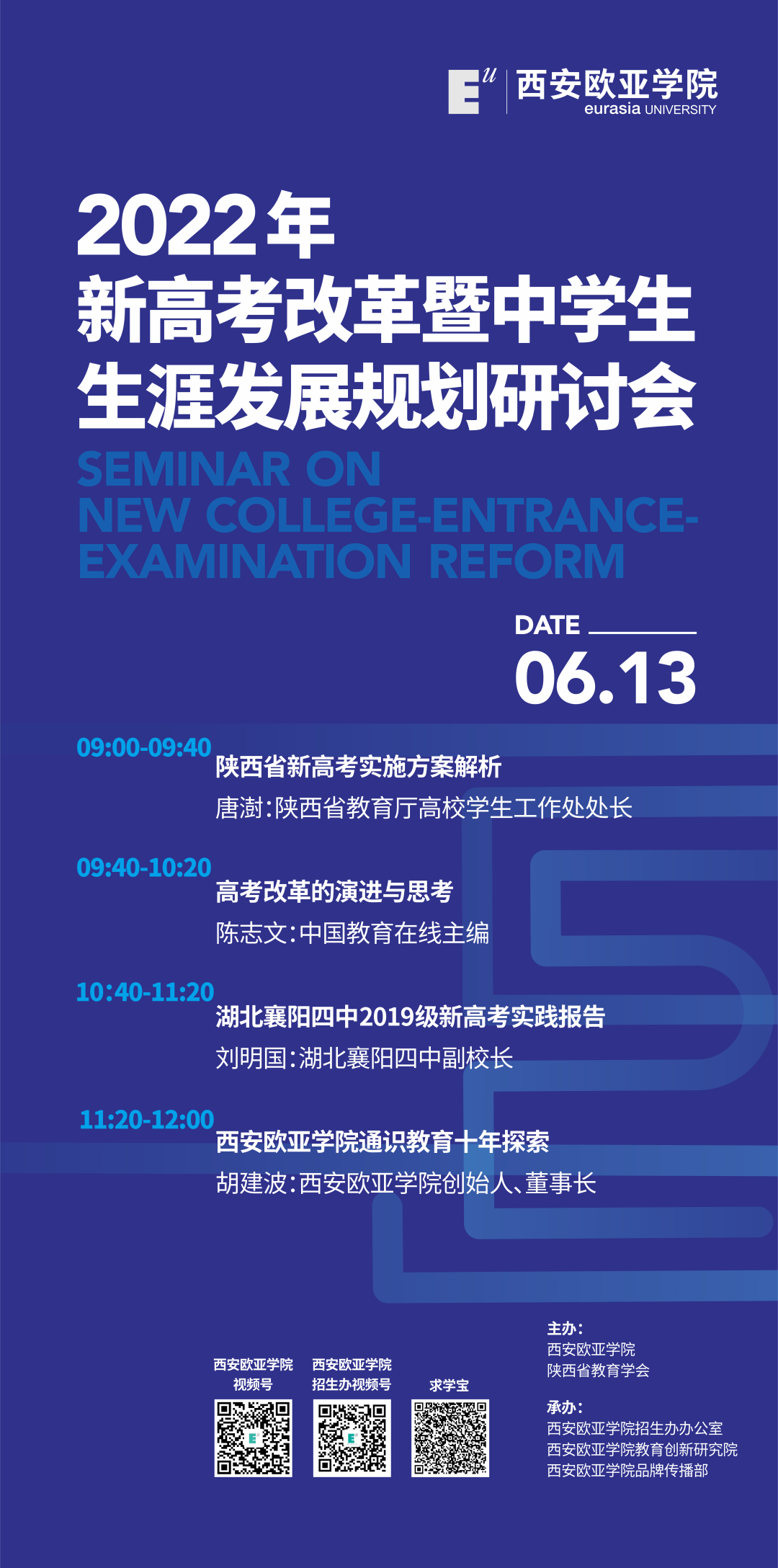 为了落实立德树人的根本任务,推动高中育人方式的改革落地,不断增强我省普通高中应对高考改革的适应能力,准确把握改革方向和基本精神,积极应对高考改革的新形势,sunbet申慱官网、陕西省教育学会将于6月12日—14日共同举办“2022年新高考改革暨中学生生涯发展规划研讨会”。