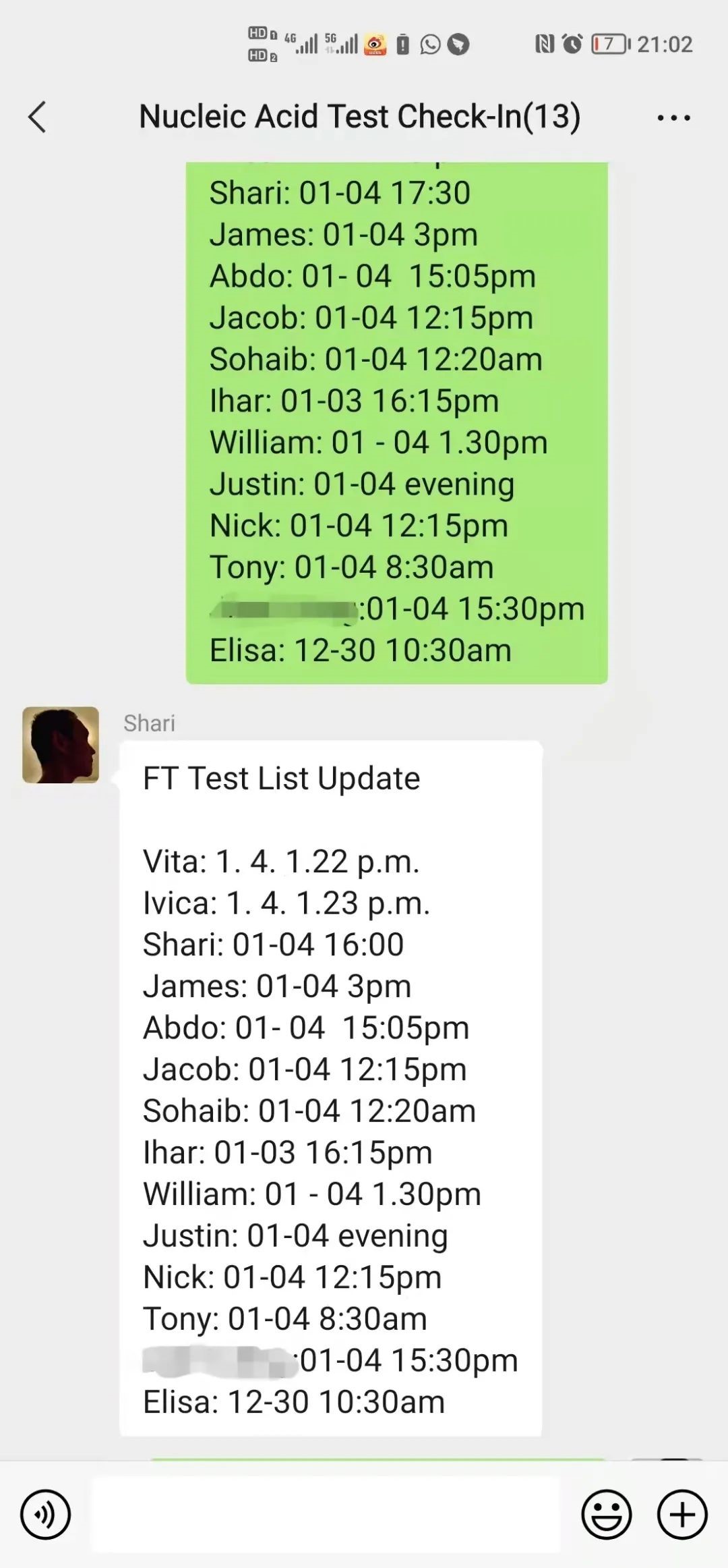 疫情期间的核酸检测,外籍教师们每天都会积极主动沟通报备核酸情况。但为了更好掌握外教们的身体实况,关注他们的身体健康,国合的老师们依然每天上、下午分别进行问候。